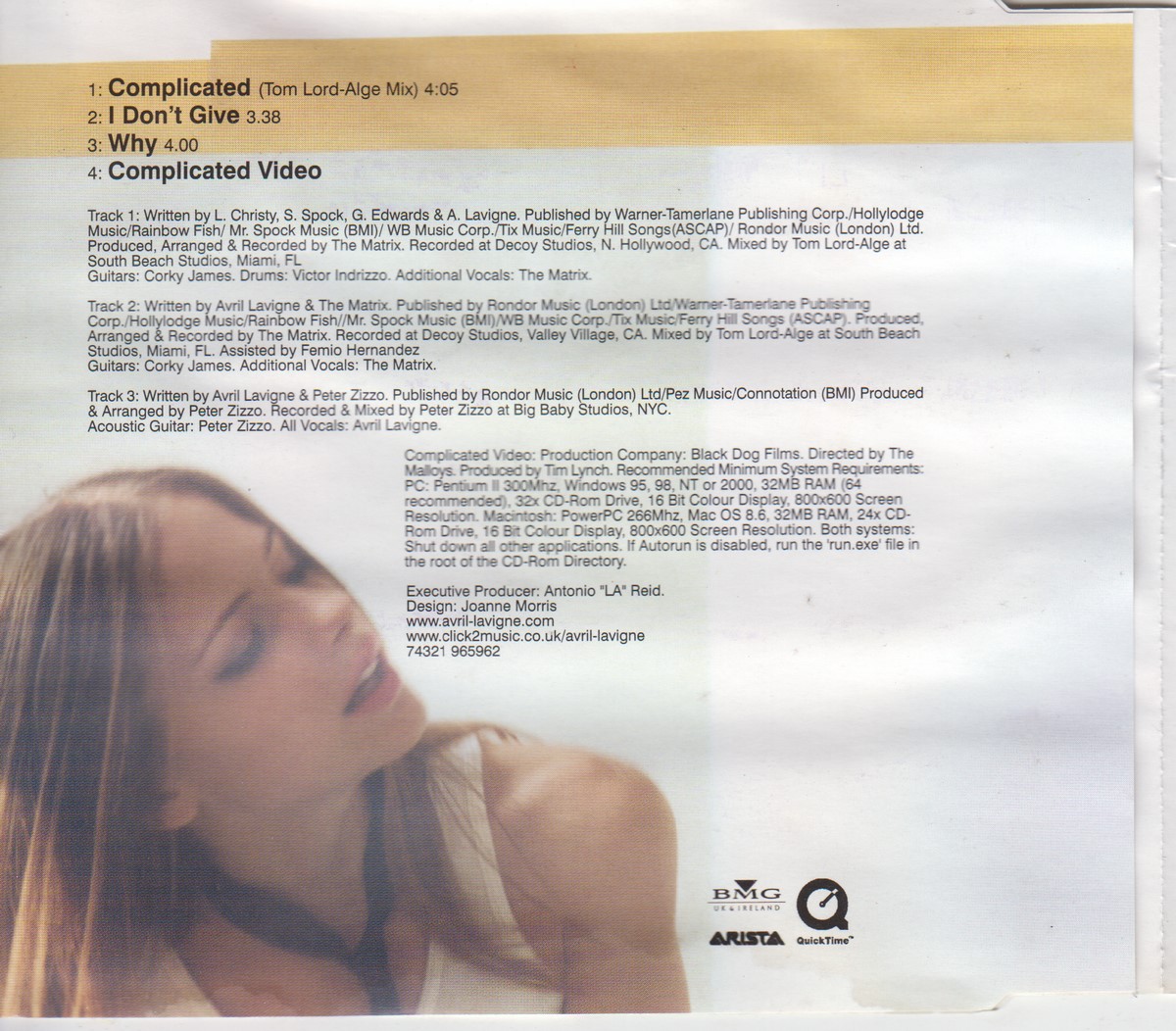 Country of release: UK Release Year: 2002 Edition: – Features: Enhanced CD Notes: – Tracklist: 1 Complicated (Tom Lord-Alge Mix) 4:05 2 I Don't Give 3:38 3 Why 4:00 Video Complicated More pictures, click to view full size: