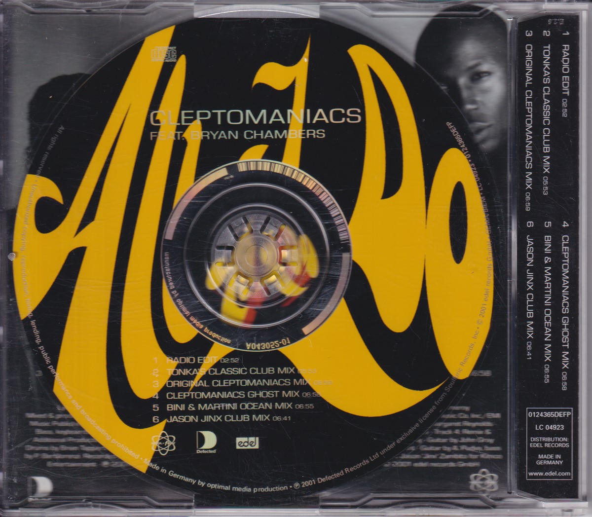 Country of release: Germany Release Year: 2001 Edition: – Features: Import (non‑UK release) Notes: – Tracklist: 1 All I Do (Radio Edit) 2:52 2 All I Do (Tonka's Classic Club Mix) 5:53 3 All I Do (Original Cleptomaniacs Mix) 6:59 • Remix – Cleptomaniacs 4 All I Do (Cleptomaniacs Ghost Mix) 6:58 • Remix – Cleptomaniacs 5 All I Do (Bini & Martini Ocean Mix) 6:55 • Remix – Bini & Martini 6 All I Do (Jason Jinx Club Mix) 6:41 • Remix – Jason Jinx More pictures, click to view full size: