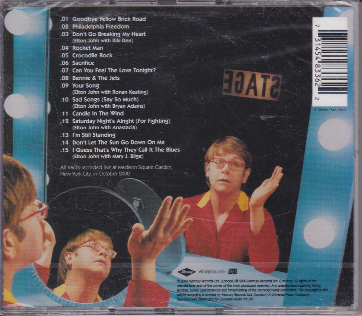 Country of release: Europe Release Year: 2000 Edition: – Features: – Notes: – Tracklist: 1 Goodbye Yellow Brick Road 3:18 2 Philadelphia Freedom 5:21 3 Don't Go Breaking My Heart 4:19 4 Rocket Man 5:41 5 Crocodile Rock 4:13 6 Sacrifice 5:20 7 Can You Feel The Love Tonight? 3:59 8 Bennie & The Jets 5:02 9 Your Song 4:17 10 Sad Songs (Say So Much) 3:54 11 Candle In The Wind 3:50 12 Saturday Night's Alright (For Fighting) 4:38 13 I'm Still Standing 3:04 14 Don't Let The Sun Go Down On Me 5:59 15 I Guess That's Why They Call It The Blues 5:12 More pictures, click to view full size:
