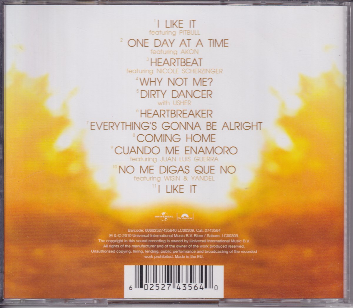 Country of release: UK Release Year: 2010 Edition: – Features: – Notes: – Tracklist: 1 I Like It 2 One Day At A Time 3 Heartbeat 4 Why Not Me? 5 Dirty Dancer 6 Heartbreaker 7 Everything's Gonna Be Alright 8 Coming Home 9 Cuando Me Enamoro 10 No Me Digas Que No 11 I Like It More pictures, click to view full size: