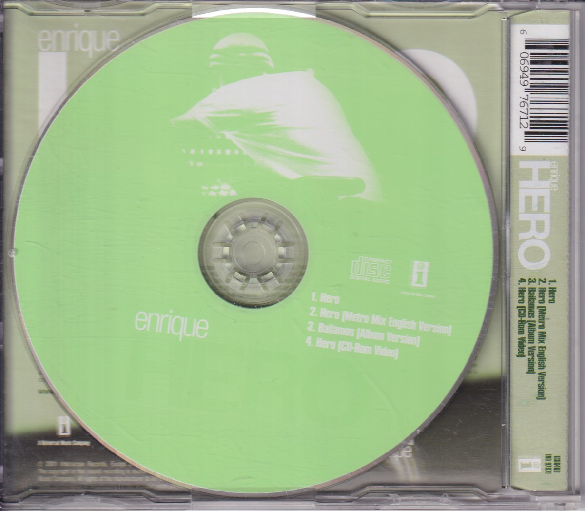 Country of release: UK Release Year: 2001 Edition: – Features: Enhanced CD Notes: – Tracklist: 1 Hero 4:25 2 Hero (Metro Mix English Version) 4:16 3 Bailamos (Album Version) 3:32 Video Hero More pictures, click to view full size: