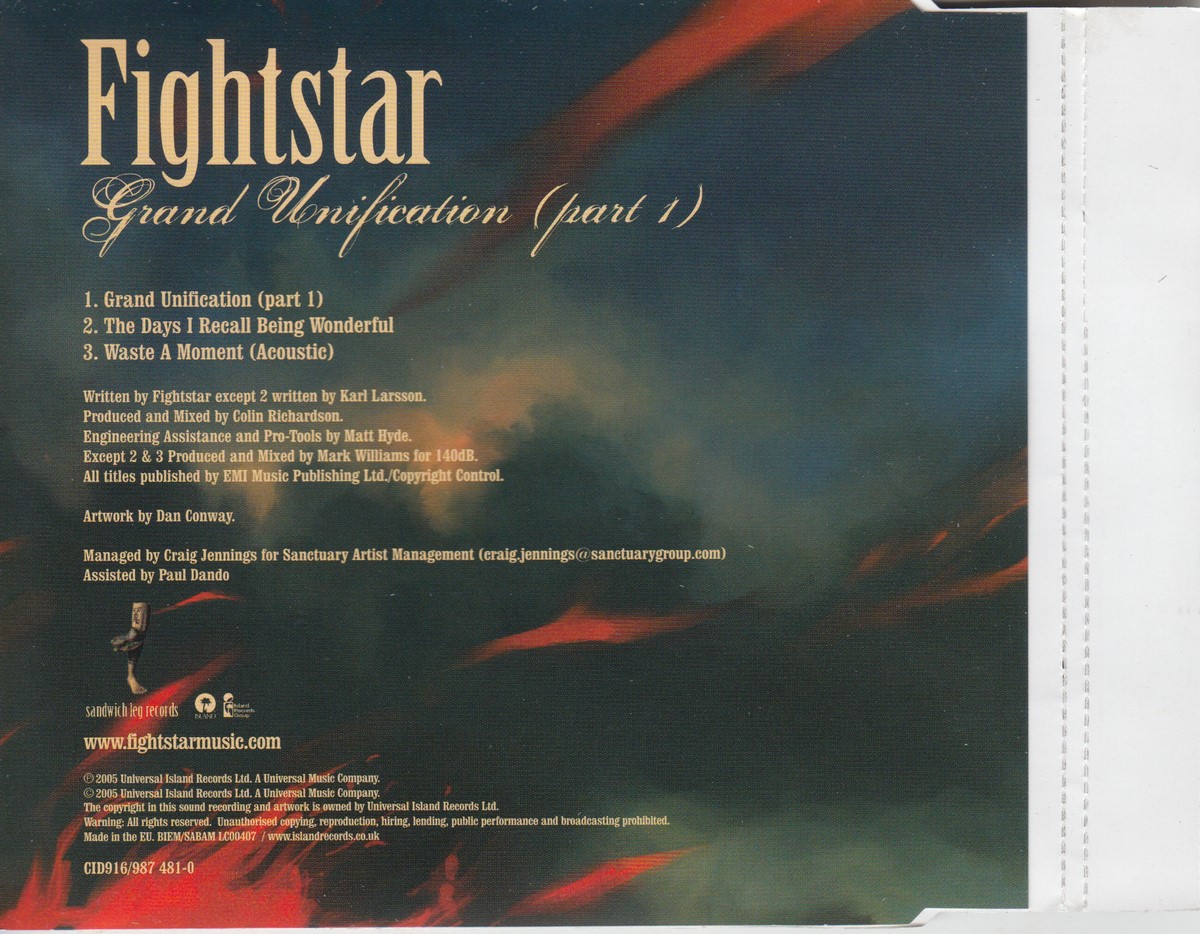 Format: CD Freetext: – Type: Single Number in Set: 1 Case Type: Slimline / J‑card jewel case Label & Cat.no.: Island Records – CID916 Sandwich Leg Records – 987 481-0 |