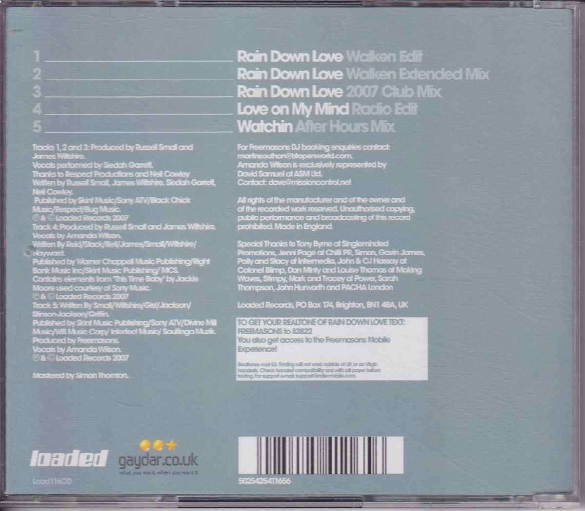 Country of release: UK Release Year: 2007 Edition: – Features: – Notes: – Tracklist: 1 Rain Down Love (Walken Edit) 3:17 • Remix – Walken (2) 2 Rain Down Love (Walken Extended Mix) 5:57 • Remix – Walken (2) 3 Rain Down Love (2007 Club Mix) 7:01 4 Love On My Mind (Radio Edit) 3:03 5 Watchin' (After Hours Mix) 5:36 More pictures, click to view full size: