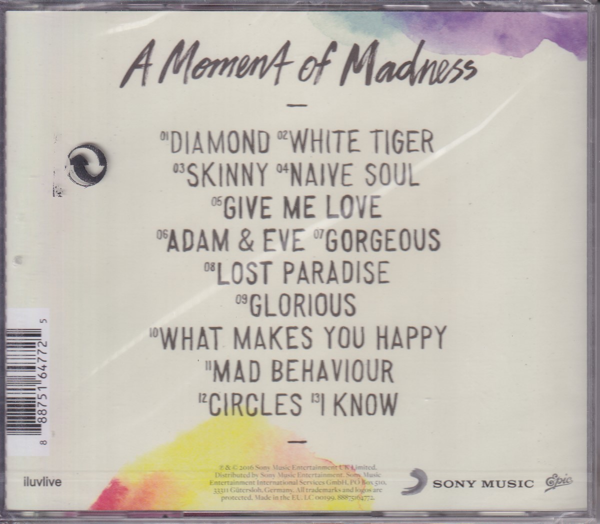 Format: CD Freetext: – Type: Album Number in Set: 1 Case Type: Standard jewel case Label & Cat.no.: Epic – 88875164772 Sony Music – 88875164772 iluvlive – 88875164772 |