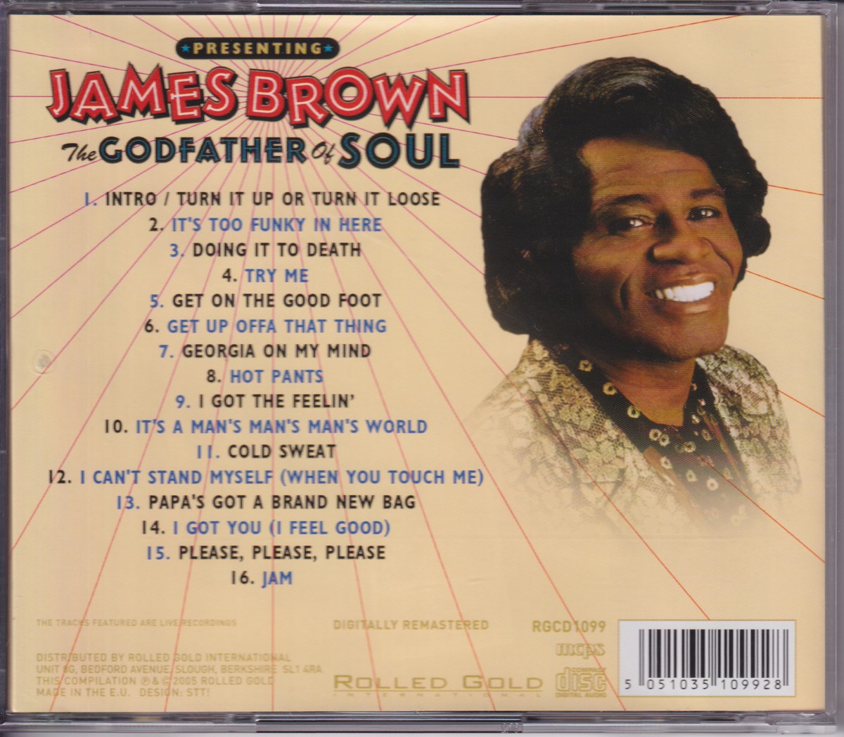 Country of release: Europe Release Year: 2005 Edition: Remastered Features: Remastered Notes: Live recordings. Remastered. Tracklist: 1 Intro / Turn It Up Or Turn It Down 2 It's Too Funky In Here 3 Doing It To Death 4 Try Me 5 Get On The Good Foot 6 Get Up Offa That Thing 7 Georgia On My Mind 8 Hot Pants 9 I Got That Feeling' 10 It's A Man's Man's World 11 Cold Sweat 12 I Can't Stand Myself (When You Touch Me) 13 Papa Got A Brand New Bag 14 I Got You (I Feel Good) 15 Please, Please, Please 16 Jam More pictures, click to view full size: