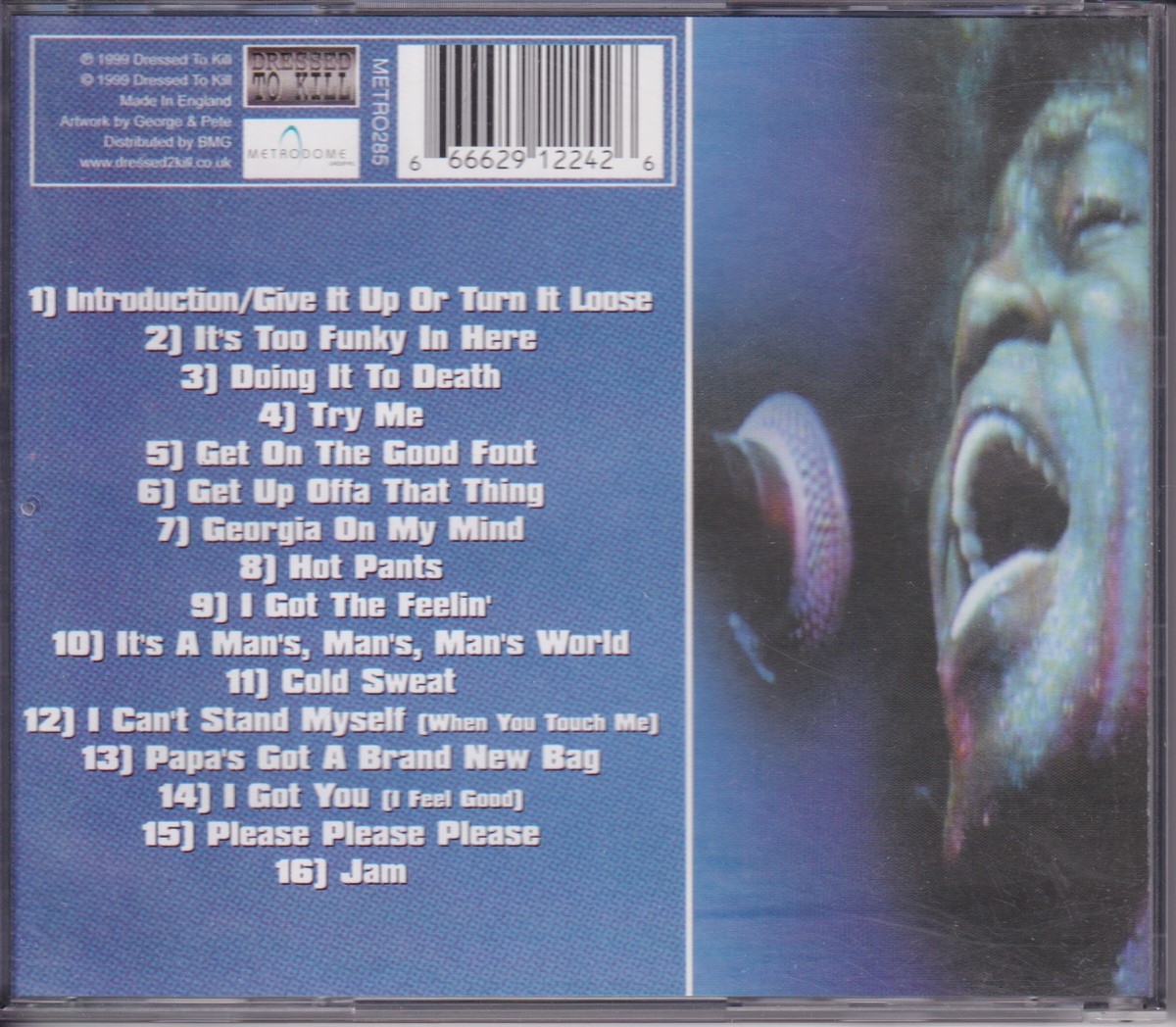 Country of release: UK Release Year: 1999 Edition: – Features: – Notes: – Tracklist: 1 Introduction / Give It Up Or Turn It Loose 2 It's Too Funky In Here 3 Doing It To Death 4 Try Me 5 Get On The Good Foot 6 Get Up Offa That Thing 7 Georgia On My Mind 8 Hot Pants 9 I Got The Feelin' 10 It's A Man's, Man's, Man's World 11 Cold Sweat 12 I Can't Stand Myself ( When You Touch Me ) 13 Papa's Got A Brand New Pig Bag 14 I Got You ( I Feel Good ) 15 Please Please Please 16 Jam More pictures, click to view full size: