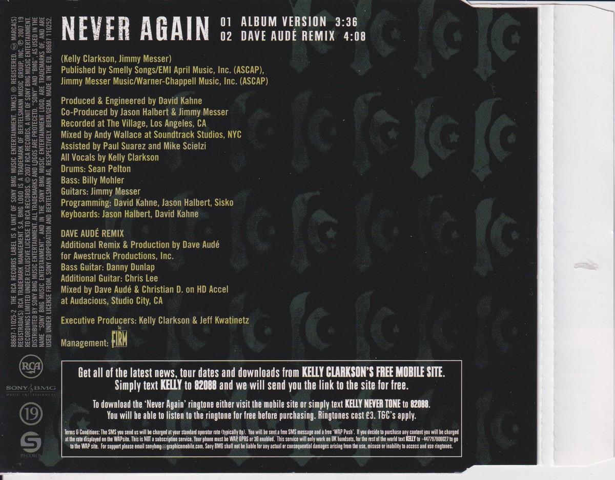 Format: CD Freetext: – Type: Single Number in Set: 1 Case Type: Slimline / J‑card jewel case Label & Cat.no.: RCA – 88697-11025-2 S Records – 88697-11025-2 19 Recordings – 88697-11025-2 Sony BMG Music Entertainment – 88697-11025-2  |