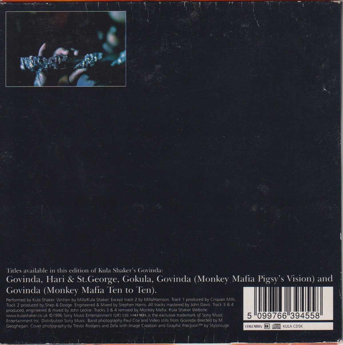 Country of release: UK Release Year: 1996 Edition: – Features: – Notes: – Tracklist: 1 Govinda, Hari & St. George 4:02 2 Gokula 2:52 3 Govinda (Monkey Mafia Pigsy's Vision) 6:56 • Remix – Monkey Mafia 4 Govinda (Monkey Mafia Ten To Ten) 4:31 • Remix – Monkey Mafia More pictures, click to view full size: