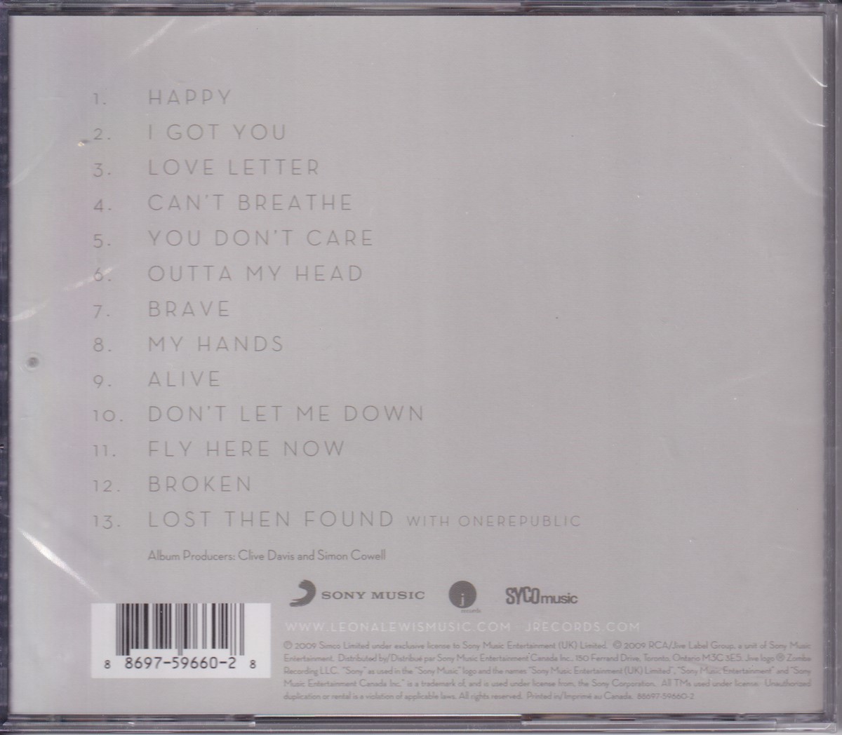 Format: CD Freetext: – Type: Album Number in Set: 1 Case Type: Standard jewel case Label & Cat.no.: Syco Music – 88697-59660-2 Sony Music – 88697-59660-2 J Records – 88697-59660-2 |