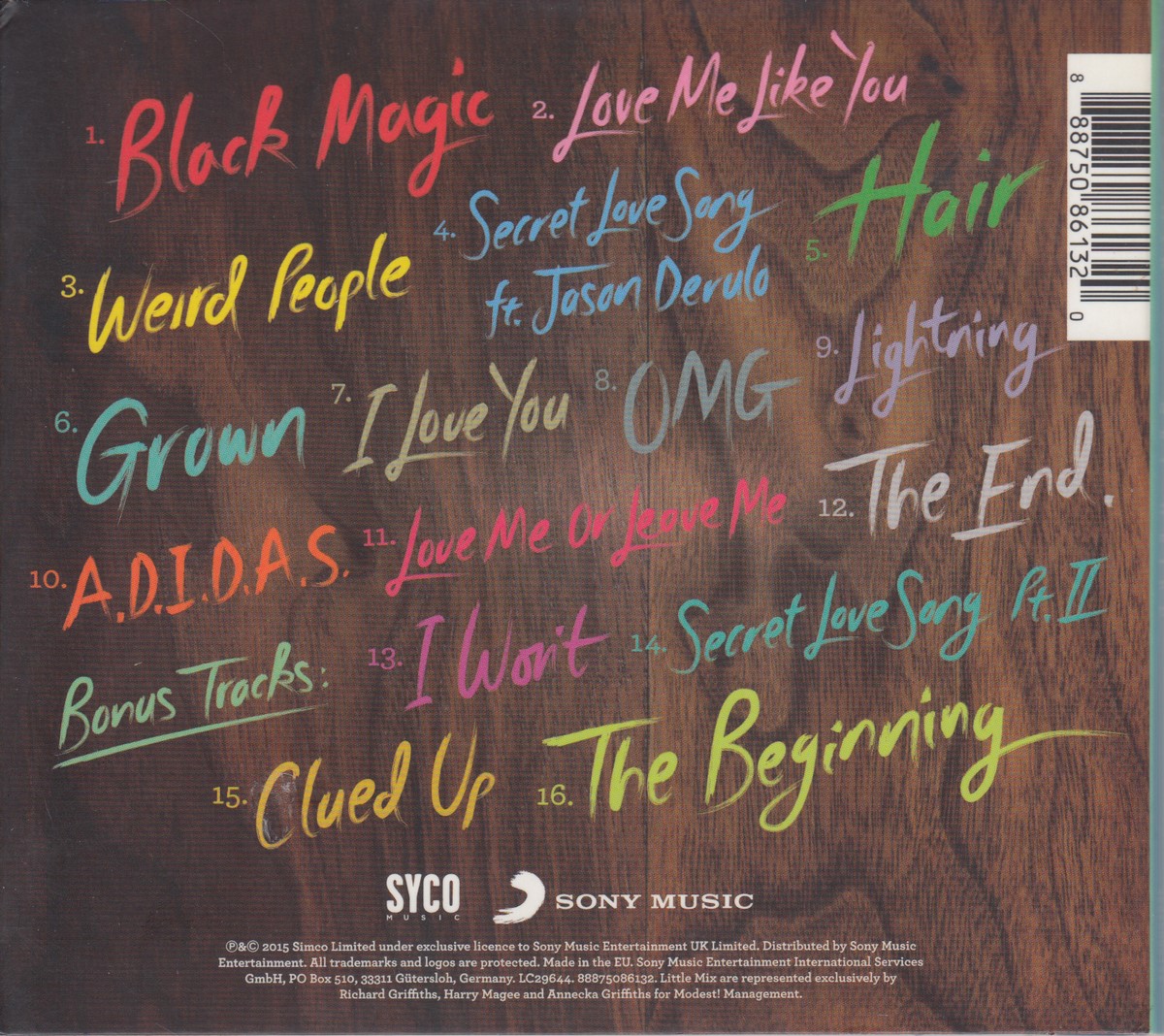 Country of release: Europe Release Year: 2015 Edition: Deluxe Edition Features: – Notes: Deluxe edition with 4 bonus tracks. Tracklist: 1 Black Magic 3:32 2 Love Me Like You 3:18 3 Weird People 3:31 4 Secret Love Song 4:10 5 Hair 3:29 6 Grown 2:37 7 I Love You 4:09 8 OMG 3:23 9 Lightning 5:12 10 A.D.I.D.A.S. 3:22 11 Love Me Or Leave Me 3:26 12 The End 2:12 Bonus Tracks: 13 I Won't 3:18 14 Secret Love Song Pt. II 4:27 15 Clued Up 4:06 16 The Beginning 1:33 More pictures, click to view full size: