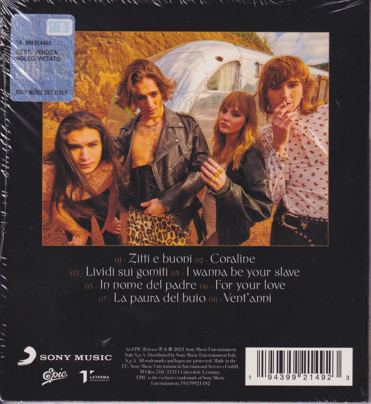 Country of release: Europe Release Year: 2021 Edition: Special Edition Features: – Notes: Packaged in 4-panel digipak. Includes 24-page booklet with lyrics and additional pictures. Tracklist: 1 Zitti E Buoni 3:15 2 Coraline 5:00 3 Lividi Sui Gomiti 2:46 4 I Wanna Be Your Slave 2:53 5 In Nome Del Padre 3:40 6 For Your Love 3:51 7 La Paura Del Buio 3:30 8 Vent'anni 4:14 More pictures, click to view full size: