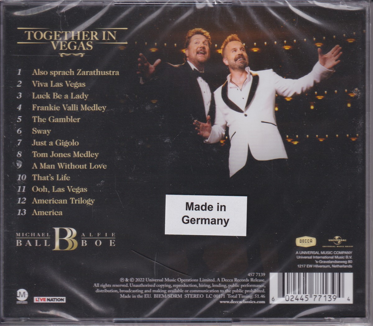 Country of release: UK Release Year: 2022 Edition: – Features: – Notes: – Tracklist: 1 Also Sprach Zarathustra 2 Viva Las Vegas 3 Luck Be A Lady 4 Frankie Valli Medley 5 The Gambler 6 Sway 7 Just A Gigolo 8 Tom Jones Medley 9 A Man Without Love 10 That's Life 11 Ooh, Las Vegas 12 American Trilogy 13 America More pictures, click to view full size: