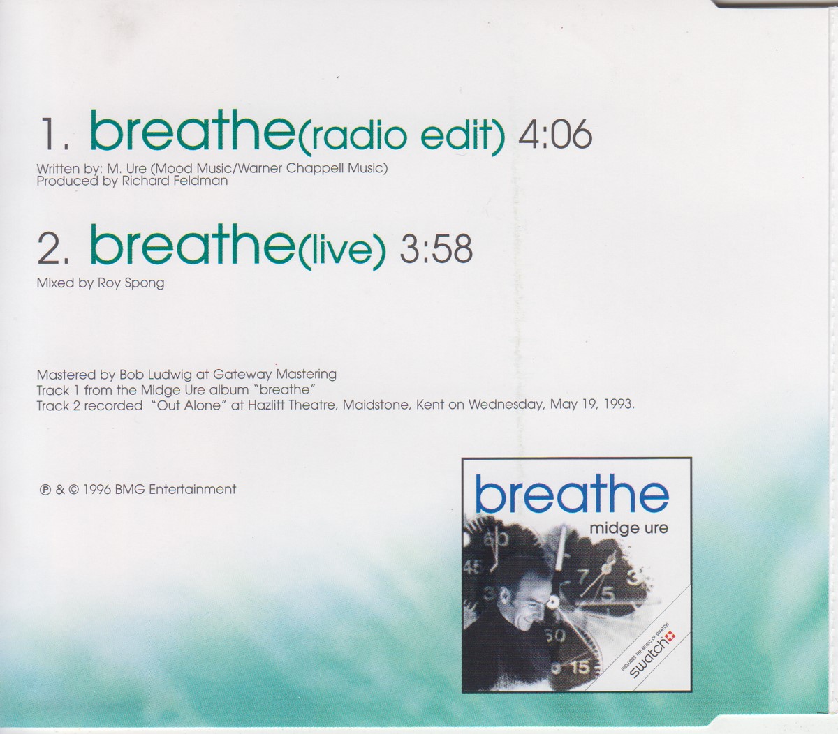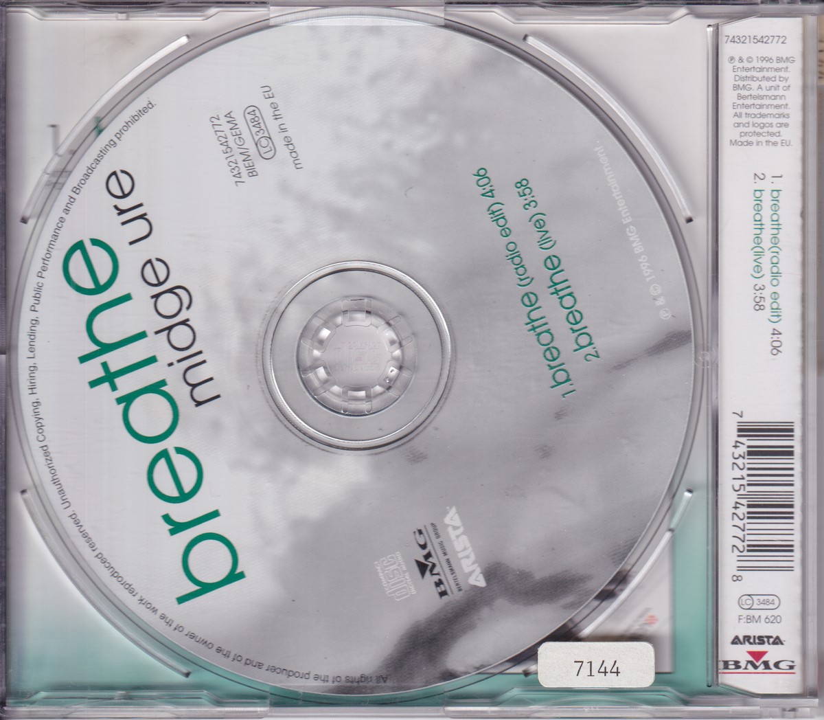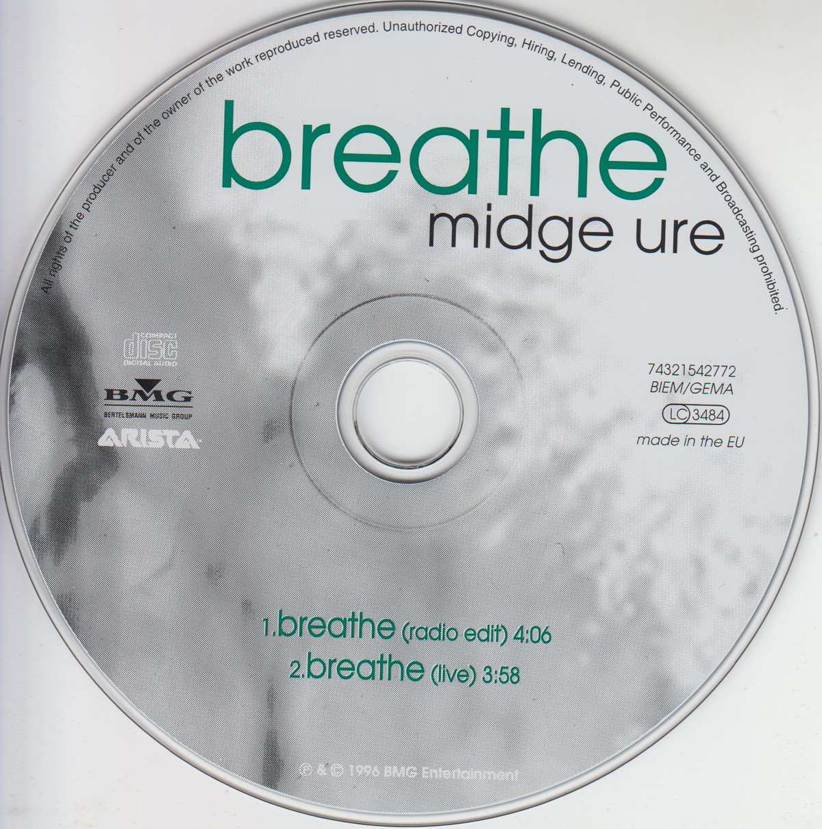 1: Media condition: Very Good Plus (VG+) Sleeve condition: Near Mint (NM or M-) Condition Notes: – eBay listing: Midge Ure - Breathe (1996) EX Condition: Very Good Price: £13.15 https://www.ebay.co.uk/itm/115093732057