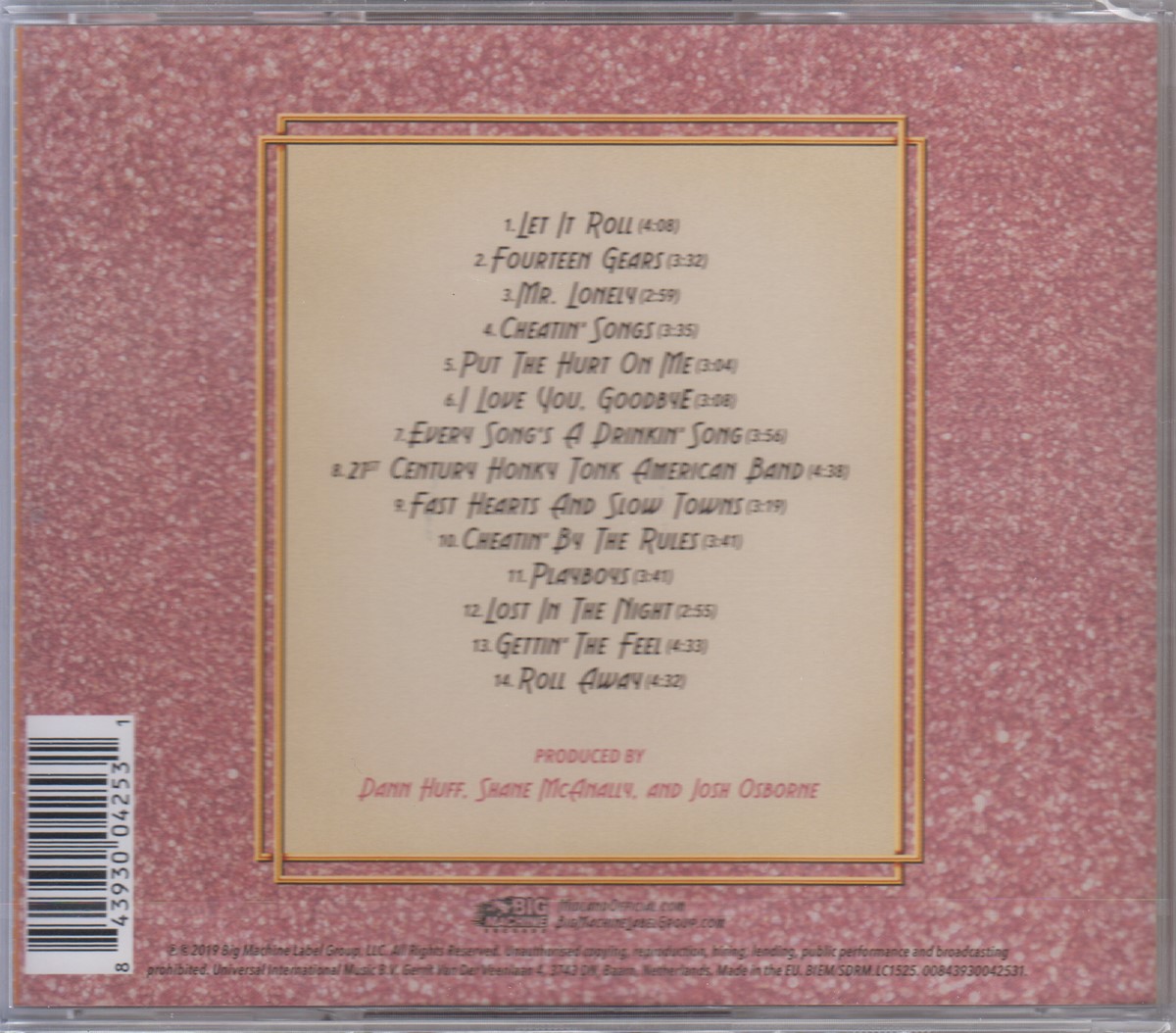 Country of release: Europe Release Year: 2019 Edition: – Features: – Notes: – Tracklist: 1 Let It Roll 4:08 2 Fourteen Gears 3:32 3 Mr. Lonely 2:59 4 Cheatin' Songs 3:35 5 Put The Hurt On Me 3:04 6 I Love You, Goodbye 3:08 7 Every Song's A Drinkin' Song 3:56 8 21st Century Honky Tonk American Band 4:38 9 Fast Hearts And Slow Towns 3:19 10 Cheatin' By The Rules 3:41 11 Playboys 3:41 12 Lost In The Night 2:55 13 Gettin' The Feel 4:33 14 Roll Away 4:32 More pictures, click to view full size: