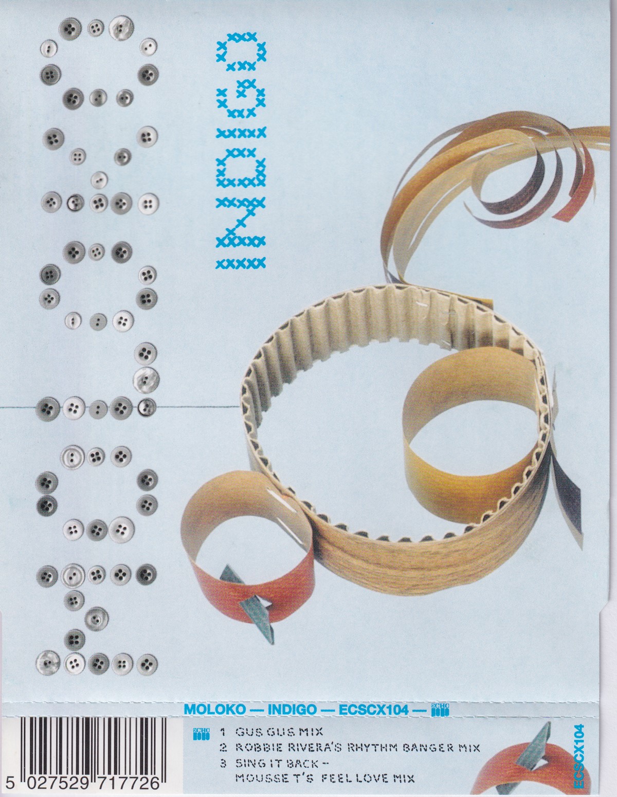 Country of release: UK Release Year: 2000 Edition: – Features: – Notes: – Tracklist: 1 Indigo (Gus Gus Mix) 6:00 • Remix – Gus Gus[GusGus] 2 Indigo (Robbie Rivera's Rhythm Banger Mix) 7:21 • Remix – Robbie Rivera 3 Sing It Back (Mousse T's Feel Love Mix) 6:36 • Remix – Mousse T[Mousse T.] More pictures, click to view full size: