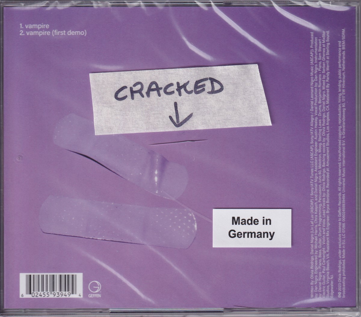 1: Media condition: Poor (P) Sleeve condition: Poor (P) Condition Notes: New and sealed but has small crack to case - see pictures. eBay listing: Olivia Rodrigo - Vampire (2023,Limited Ed.) LN #6 Condition: Like New Price: £6.85 https://www.ebay.co.uk/itm/116541879159