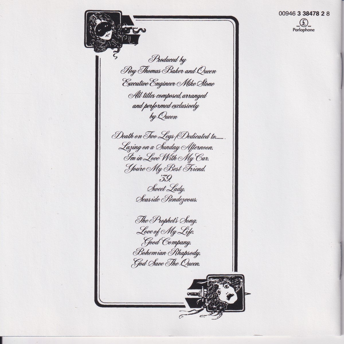 Country of release: Europe Release Year: 2005 Edition: Reissue, Remastered Features: Remastered Notes: – Tracklist: 1 Death On Two Legs (Dedicated To....) 2 Lazing On A Sunday Afternoon 3 I'm In Love With My Car 4 You're My Best Friend 5 '39 6 Sweet Lady 7 Seaside Rendezvous 8 The Prophet's Song 9 Love Of My Life 10 Good Company 11 Bohemian Rhapsody 12 God Save The Queen More pictures, click to view full size: