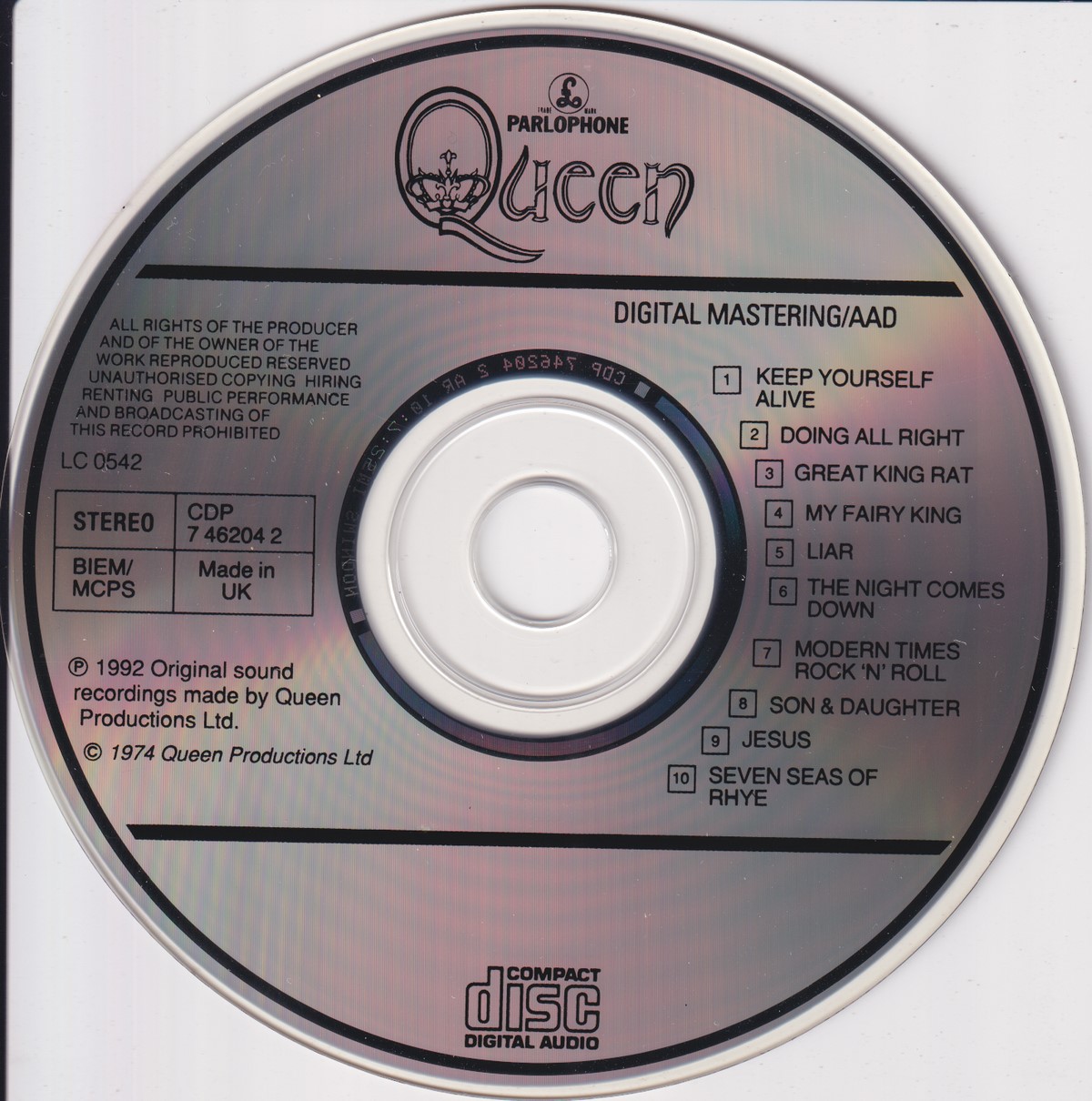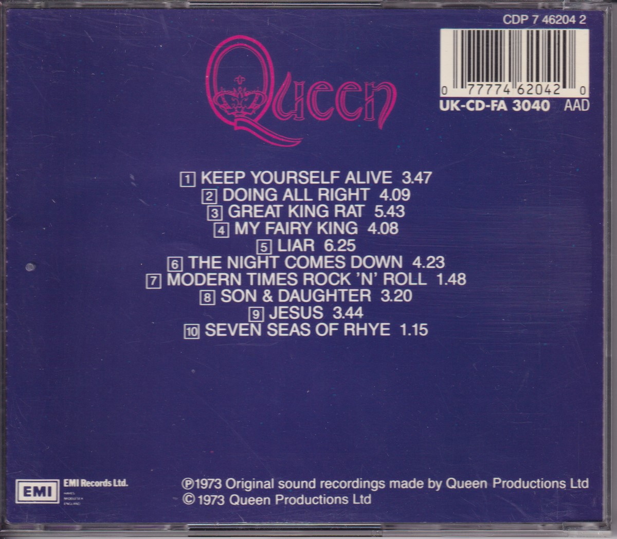 Country of release: Europe Year ‑ Original Year of Release: 1973 Year - Year of this Edition: – Edition: Reissue Features: – Notes: – Tracklist: 1 Keep Yourself Alive 3:47 2 Doing All Right 4:09 3 Great King Rat 5:43 4 My Fairy King 4:08 5 Liar 6:25 6 The Night Comes Down 4:23 7 Modern Times Rock 'n' Roll 1:48 8 Son & Daughter 3:20 9 Jesus 3:44 10 Seven Seas Of Rhye 1:15 More pictures, click to view full size: