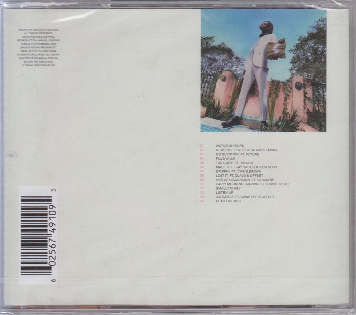 Country of release: Europe Release Year: 2018 Edition: Parental Advisory Features: – Notes: – Tracklist: 1 World Is Yours 2 New Freezer 3 No Question 4 Plug Walk 5 Too Gone 6 Made It 7 Drippin 8 Lost It 9 End Of Discussion 10 Early Morning Trappin 11 Small Things 12 Listen Up 13 Gargoyle 14 Dead Friends More pictures, click to view full size: