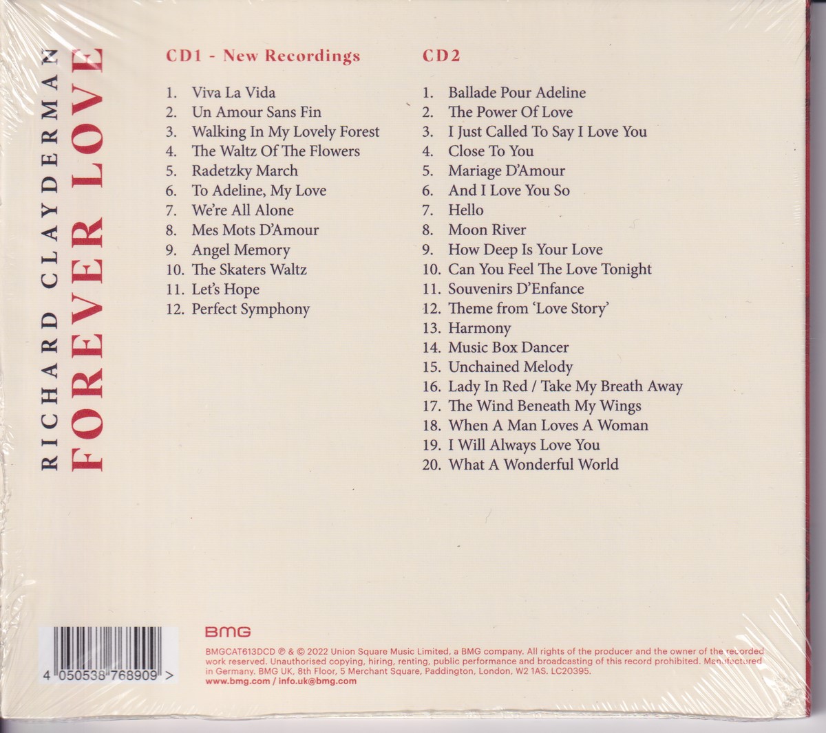 Country of release: Europe Release Year: 2022 Edition: – Features: – Notes: – Tracklist: Disc 1/2 CD01 - New Recordings: 1-1 Viva La Vida 1-2 Un Amour Sans Fin 1-3 Walking In My Lovely Forest 1-4 The Waltz Of The Flowers 1-5 Radetzky March 1-6 To Adeline, My Love 1-7 We're All Alone 1-8 Mes Mots D'Amour 1-9 Angel Memory 1-10 The Skaters Waltz 1-11 Let's Hope 1-12 Perfect Symphony Disc 2/2 CD02: 2-1 Ballade Pour Adeline 2-2 The Power Of Love 2-3 I Just Called To Say I Love You 2-4 Close To You 2-5 Mariage D'Amour 2-6 And I Love You So 2-7 Hello 2-8 Moon River 2-9 How Deep Is Your Love 2-10 Can You Feel The Love Tonight 2-11 Souvenirs D'Enfance 2-12 Theme From ''Love Story'' 2-13 Harmony 2-14 Music Box Dancer 2-15 Unchained Melody 2-16 Lady In Red / Take My Breath Away 2-17 The Wind Beneath My Wings 2-18 When A Man Loves A Woman 2-19 I Will Always Love You 2-20 What A Wonderful World More pictures, click to view full size:
