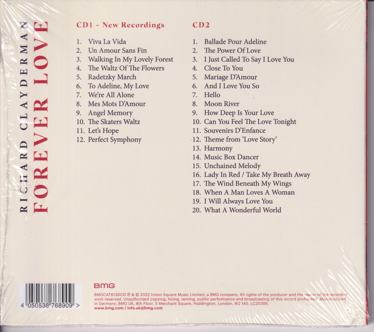 Country of release: Europe Release Year: 2022 Edition: – Features: – Notes: – Tracklist: Disc 1/2 CD01 - New Recordings: 1-1 Viva La Vida 1-2 Un Amour Sans Fin 1-3 Walking In My Lovely Forest 1-4 The Waltz Of The Flowers 1-5 Radetzky March 1-6 To Adeline, My Love 1-7 We're All Alone 1-8 Mes Mots D'Amour 1-9 Angel Memory 1-10 The Skaters Waltz 1-11 Let's Hope 1-12 Perfect Symphony Disc 2/2 CD02: 2-1 Ballade Pour Adeline 2-2 The Power Of Love 2-3 I Just Called To Say I Love You 2-4 Close To You 2-5 Mariage D'Amour 2-6 And I Love You So 2-7 Hello 2-8 Moon River 2-9 How Deep Is Your Love 2-10 Can You Feel The Love Tonight 2-11 Souvenirs D'Enfance 2-12 Theme From ''Love Story'' 2-13 Harmony 2-14 Music Box Dancer 2-15 Unchained Melody 2-16 Lady In Red / Take My Breath Away 2-17 The Wind Beneath My Wings 2-18 When A Man Loves A Woman 2-19 I Will Always Love You 2-20 What A Wonderful World More pictures, click to view full size: