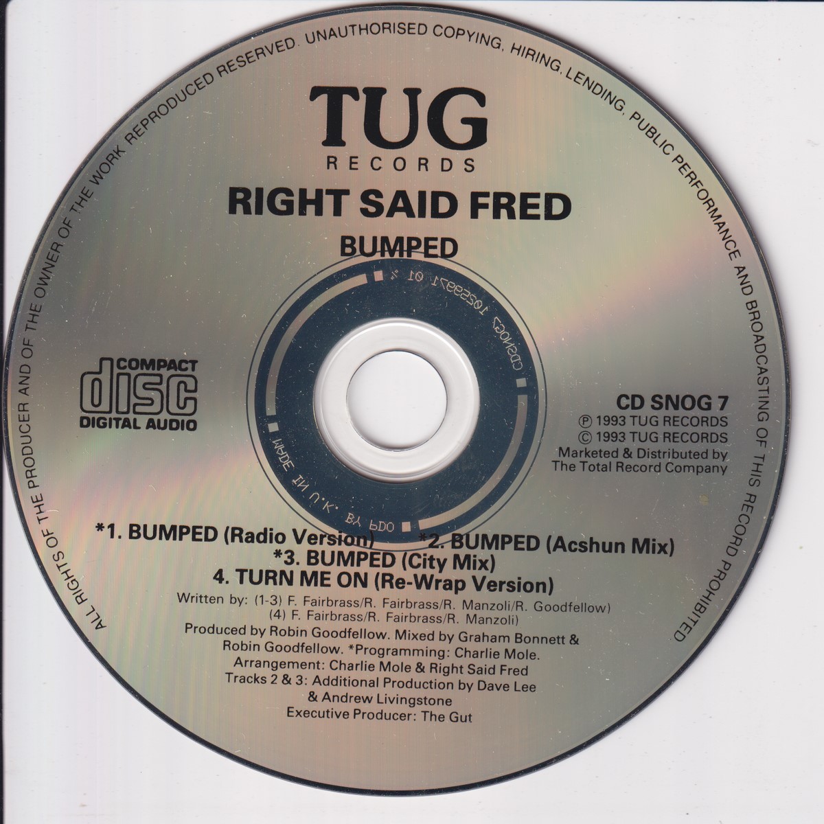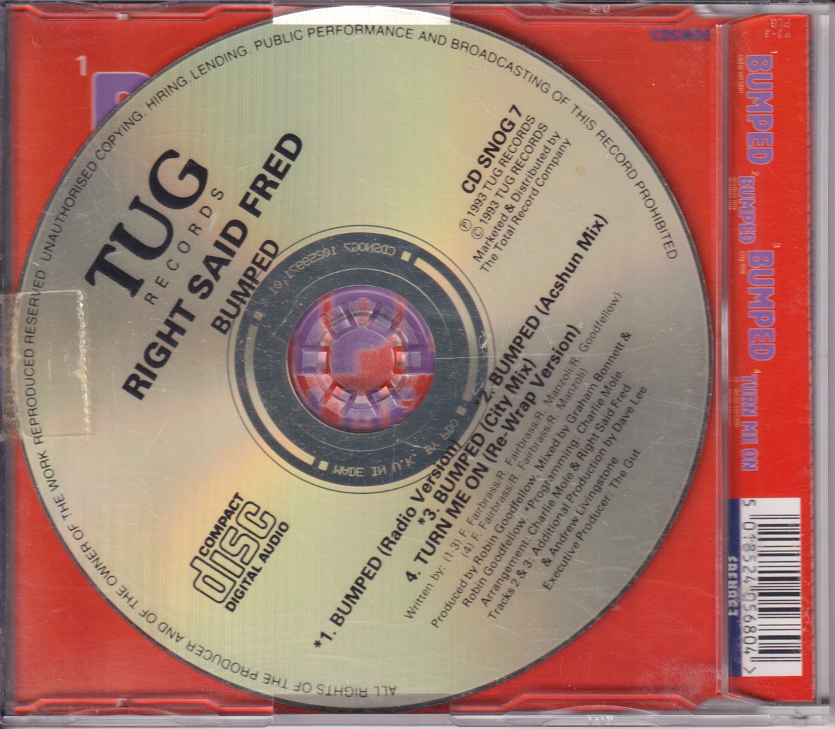 1: Media condition: Very Good Plus (VG+) Sleeve condition: Near Mint (NM or M-) Condition Notes: – eBay listing: Right Said Fred - Bumped (1993) EX Condition: Very Good Price: £1.95 https://www.ebay.co.uk/itm/116793416797