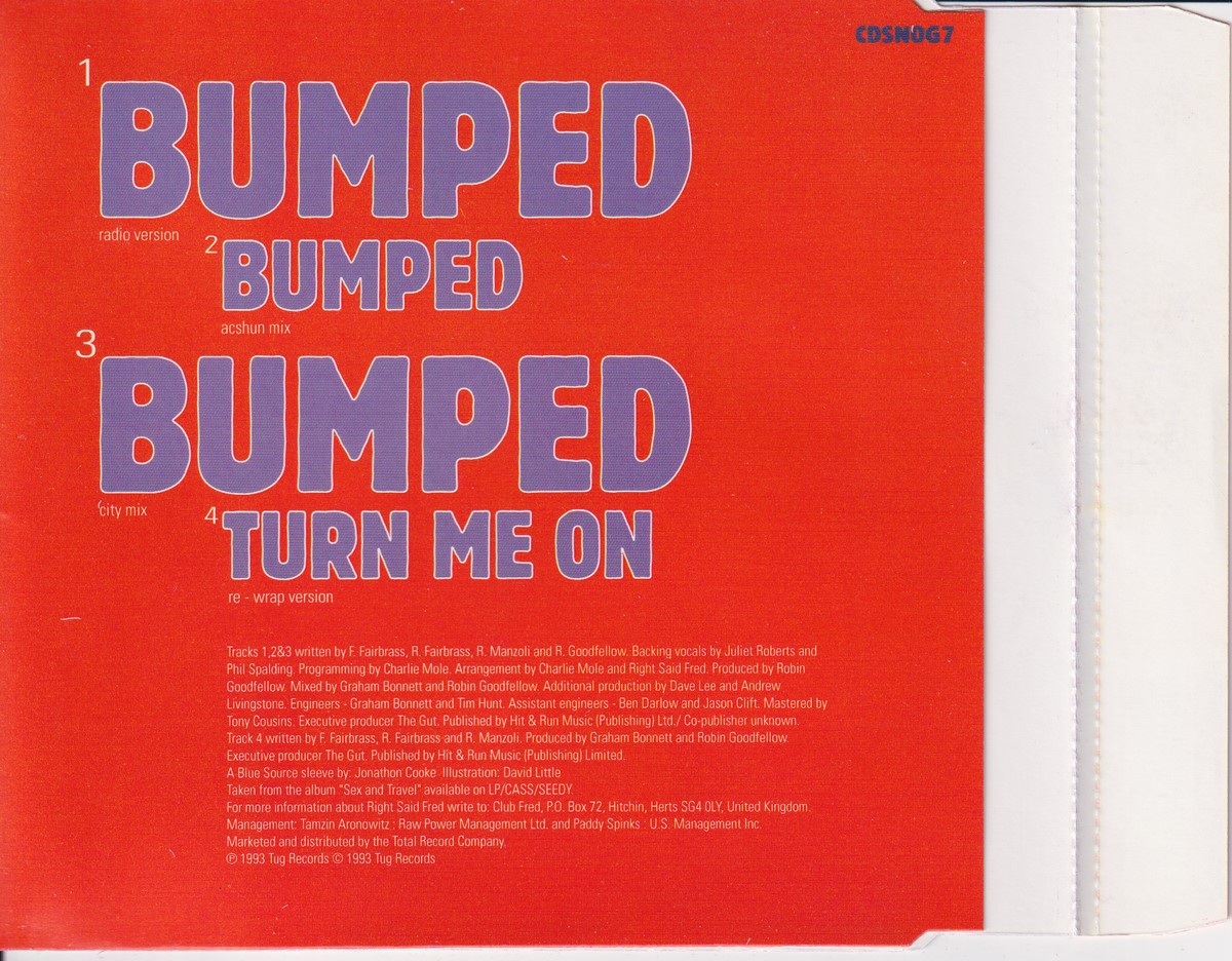 Country of release: UK Release Year: 1993 Edition: – Features: – Notes: – Tracklist: 1 Bumped (Radio Version) 3:21 2 Bumped (Acshun Mix) 8:51 3 Bumped (City Mix) 6:35 4 Turn Me On (Re-Wrap Version) 3:41 More pictures, click to view full size: