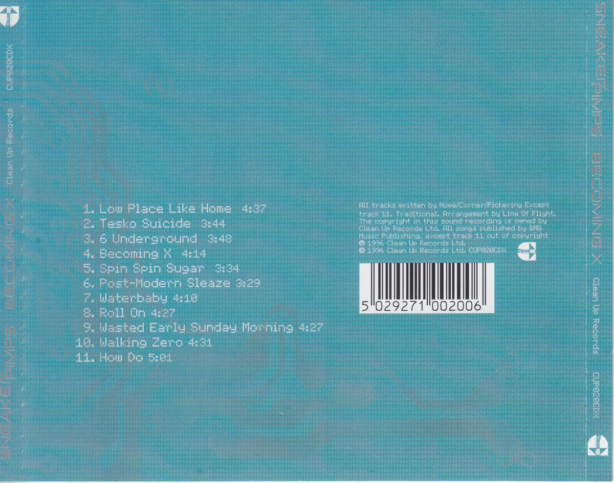 Country of release: UK Release Year: 1997 Edition: Reissue Features: – Notes: – Tracklist: 1 Low Place Like Home 4:37 2 Tesko Suicide 3:44 3 6 Underground 3:48 4 Becoming X 4:14 5 Spin Spin Sugar 3:34 6 Post-Modern Sleaze 3:29 7 Waterbaby 4:10 8 Roll On 4:27 9 Wasted Early Sunday Morning 4:27 10 Walking Zero 4:31 11 How Do 5:01 More pictures, click to view full size: