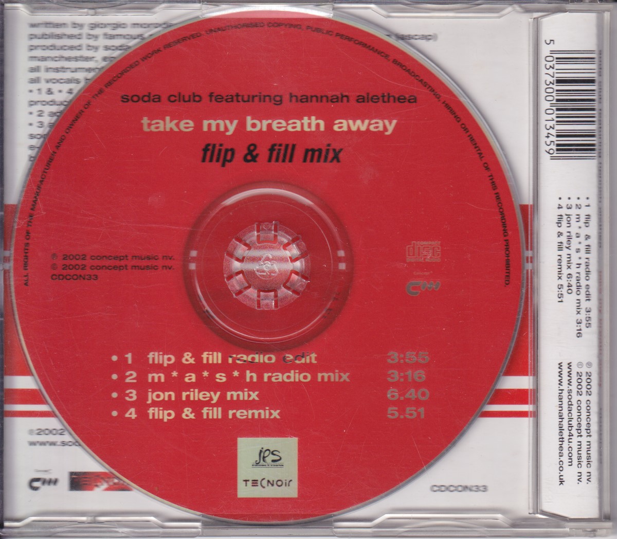 Country of release: UK Release Year: 2002 Edition: – Features: – Notes: – Tracklist: 1 Take My Breath Away (Flip & Fill Radio Edit) 3:55 • Remix – Flip & Fill 2 Take My Breath Away (M*A*S*H Radio Edit) 3:16 • Remix – M*A*S*H 3 Take My Breath Away (Jon Riley Mix) 6:40 • Remix – Jon Riley 4 Take My Breath Away (Flip & Fill Remix) 5:51 • Remix – Flip & Fill More pictures, click to view full size: