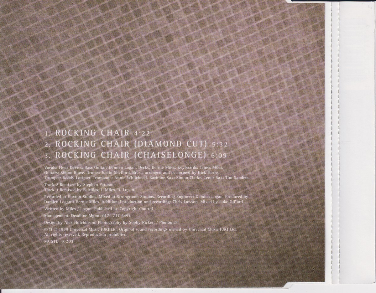 Country of release: UK Release Year: 1999 Edition: – Features: – Notes: – Tracklist: 1 Rocking Chair 4:22 2 Rocking Chair (Diamond Cut) 5:32 3 Rocking Chair ( Chaiselonge) 6:09 More pictures, click to view full size: