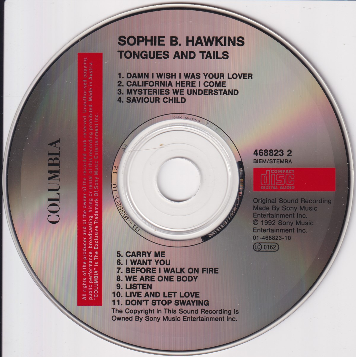 Format: CD Freetext: – Type: Album Number in Set: 1 Case Type: Standard jewel case Label & Cat.no.: Columbia – 468823 2 Columbia – COL 4688232