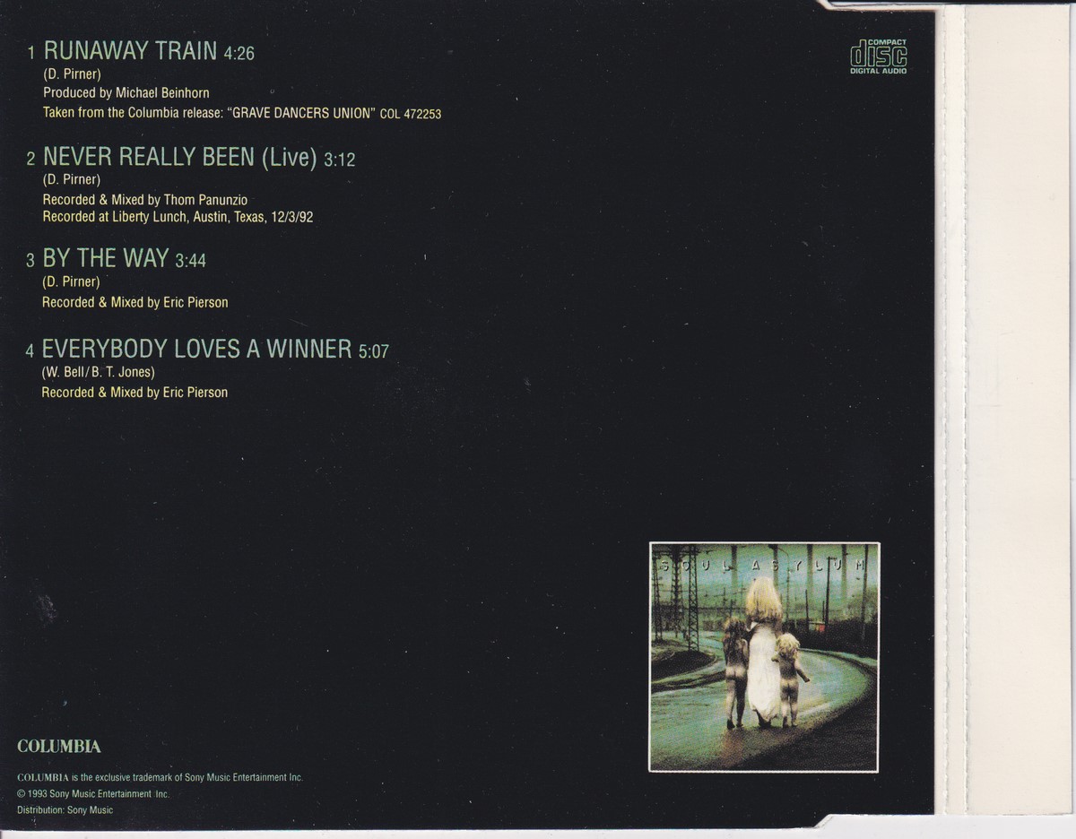 Country of release: UK & Europe Release Year: 1993 Edition: – Features: – Notes: – Tracklist: 1 Runaway Train 4:26 2 Never Really Been (Live) 3:12 3 By The Way 3:44 4 Everybody Loves A Winner 5:07 More pictures, click to view full size: