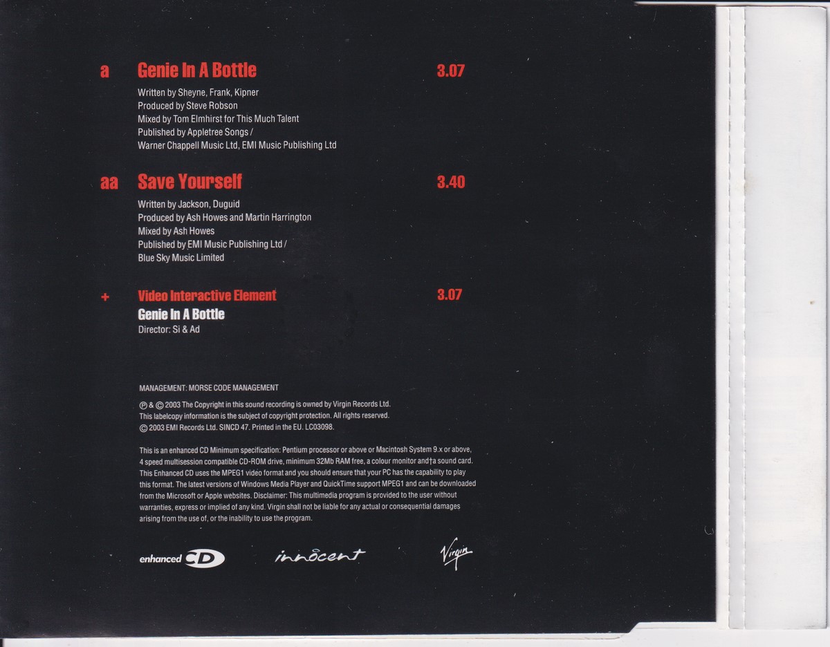 Format: CD Freetext: – Type: Single Number in Set: 1 Case Type: Slimline / J‑card jewel case Label & Cat.no.: Innocent – SINCD 47 Virgin – 07243 5 474680 2  |