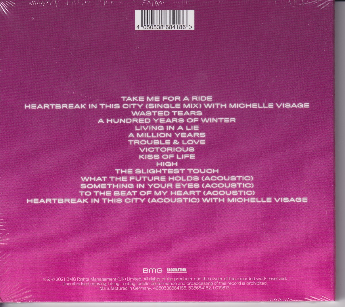 Country of release: UK Release Year: 2021 Edition: – Features: Digipak Notes: – Tracklist: 1 Take Me For A Ride 3:44 2 Heartbreak In The City (Single Mix) With Michelle Visage 3:27 3 Wasted Tears 3:40 4 A Hundred Years Of Winter 4:41 5 Living A Lie 3:03 6 A Million Years 3:03 7 Trouble & Love 3:05 8 Victorious 3:01 9 Kiss Of Life 3:01 10 High 3:26 11 The Slightest Touch 3:27 12 What The Future Holds (Acoustic) 4:23 13 Something In Your Eyes (Acoustic) 3:06 14 To The Beat Of My Heart (Acoustic) 3:04 15 Heartbreak In The City (Acoustic) With Michelle Visage 3:50 16 To The One (Shortland Remix Edit) 3:59 More pictures, click to view full size: