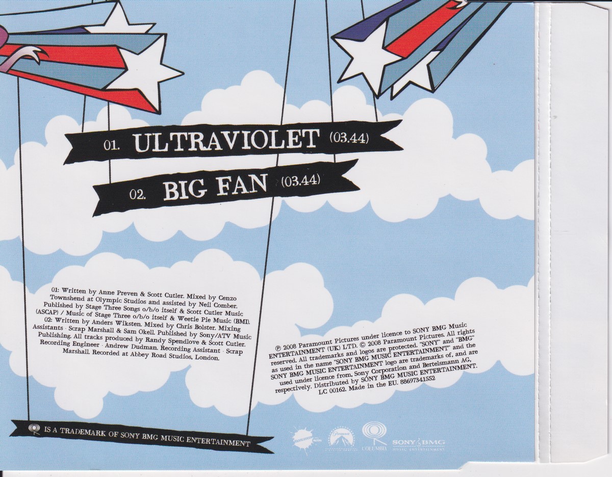 Format: CD Freetext: – Type: Single Number in Set: 1 Case Type: Slimline / J‑card jewel case Label & Cat.no.: Nickelodeon Movies – 88697341552 Paramount Pictures – 88697341552 Columbia – 88697341552 Sony BMG Music Entertainment – 88697341552  |
