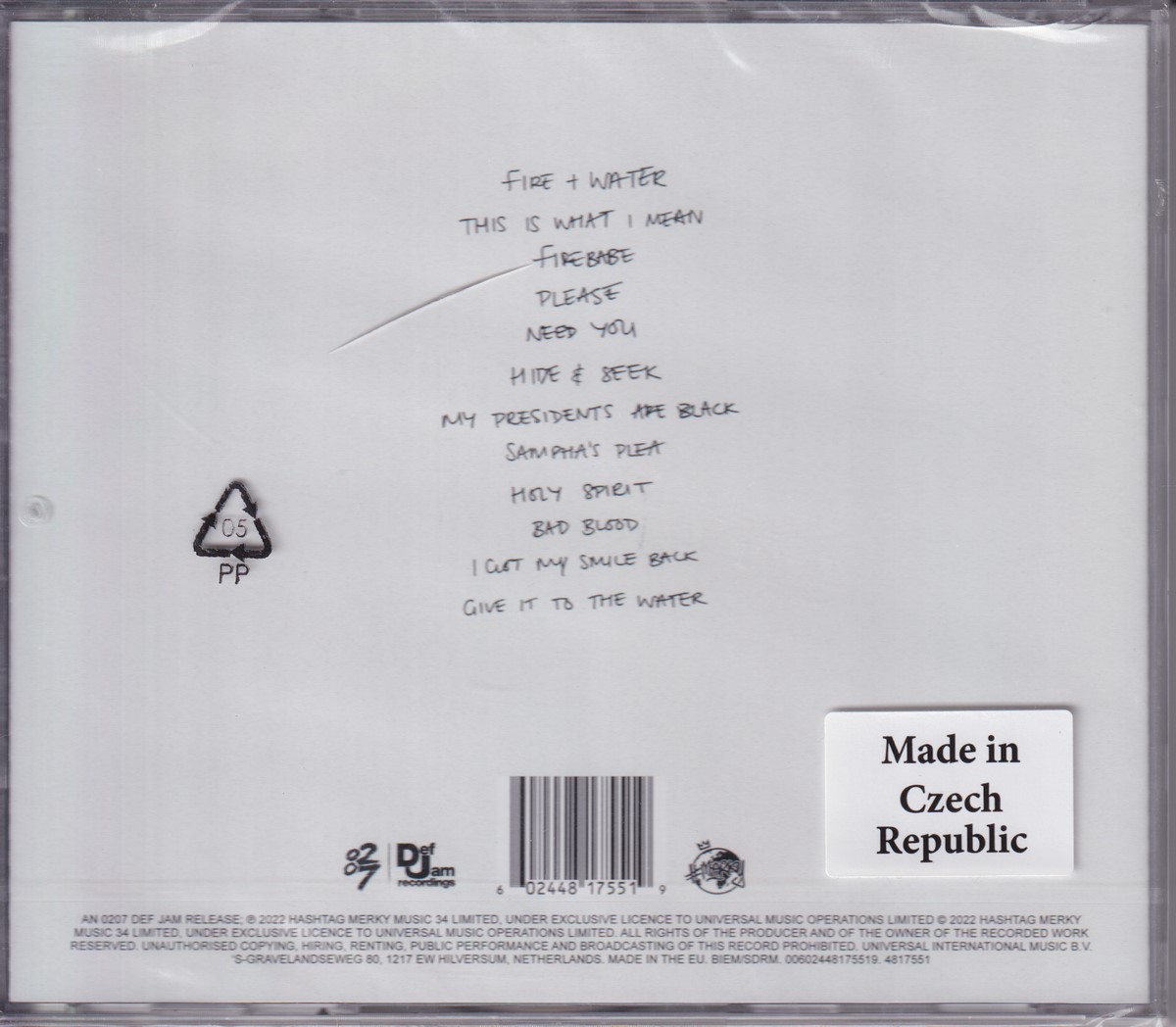 Format: CD Freetext: – Type: Album Number in Set: 1 Case Type: Standard jewel case Label & Cat.no.: 0207 Def Jam – 4817551 #Merky Records – 4817551