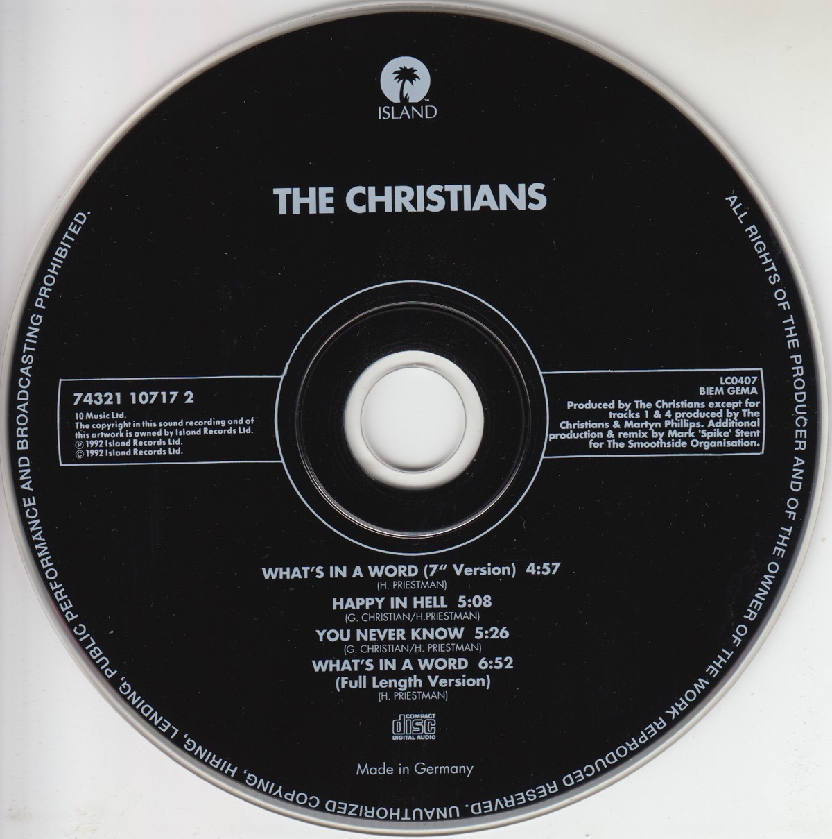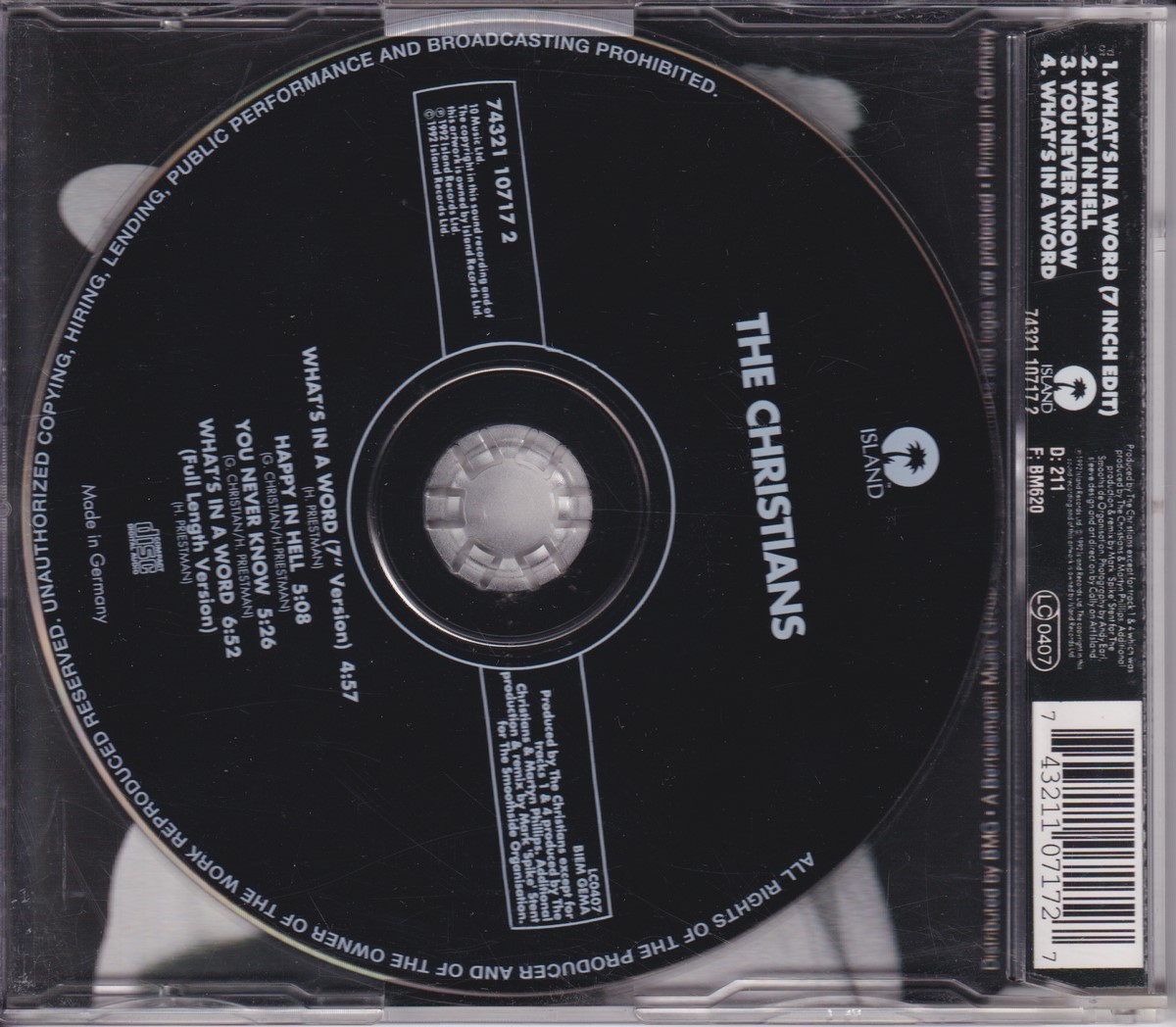 1: Media condition: Near Mint (NM or M-) Sleeve condition: Near Mint (NM or M-) Condition Notes: – eBay listing: The Christians - What's In A Word (1992) NM Condition: Very Good Price: £3.45 https://www.ebay.co.uk/itm/116799360926
