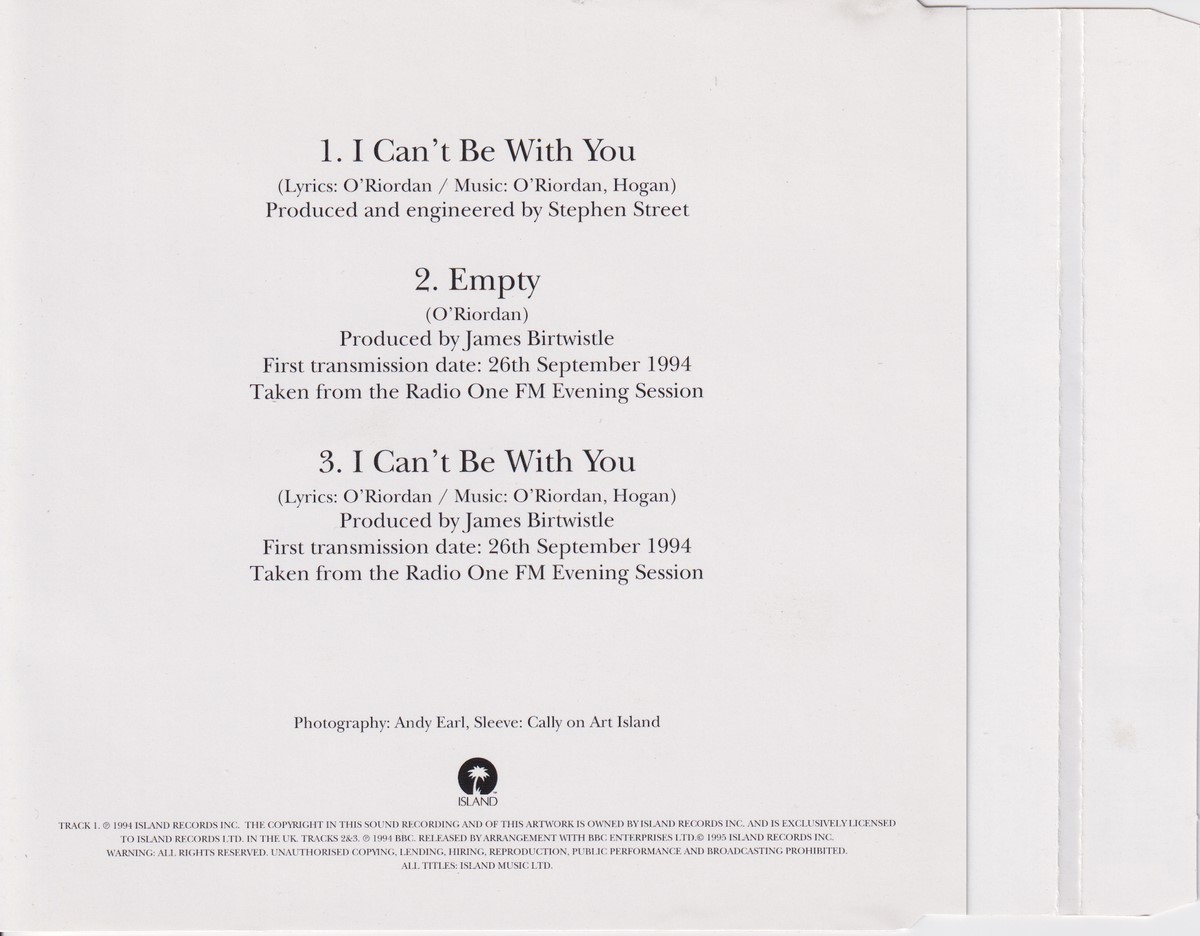 Format: CD Freetext: – Type: Single Number in Set: 1 Case Type: Slimline / J‑card jewel case Label & Cat.no.: Island Records – CIDZ 605 Island Records – 854 235-2  |