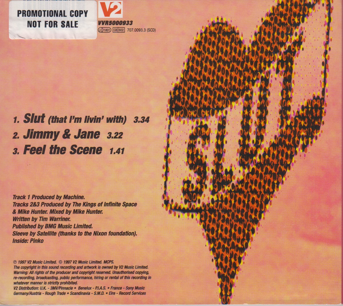 Country of release: UK Release Year: 1997 Edition: – Features: – Notes: – Tracklist: 1 Slut (That I'm Livin' With) 3:34 2 Jimmy & Jane 3:22 3 Feel The Scene 1:41 More pictures, click to view full size: