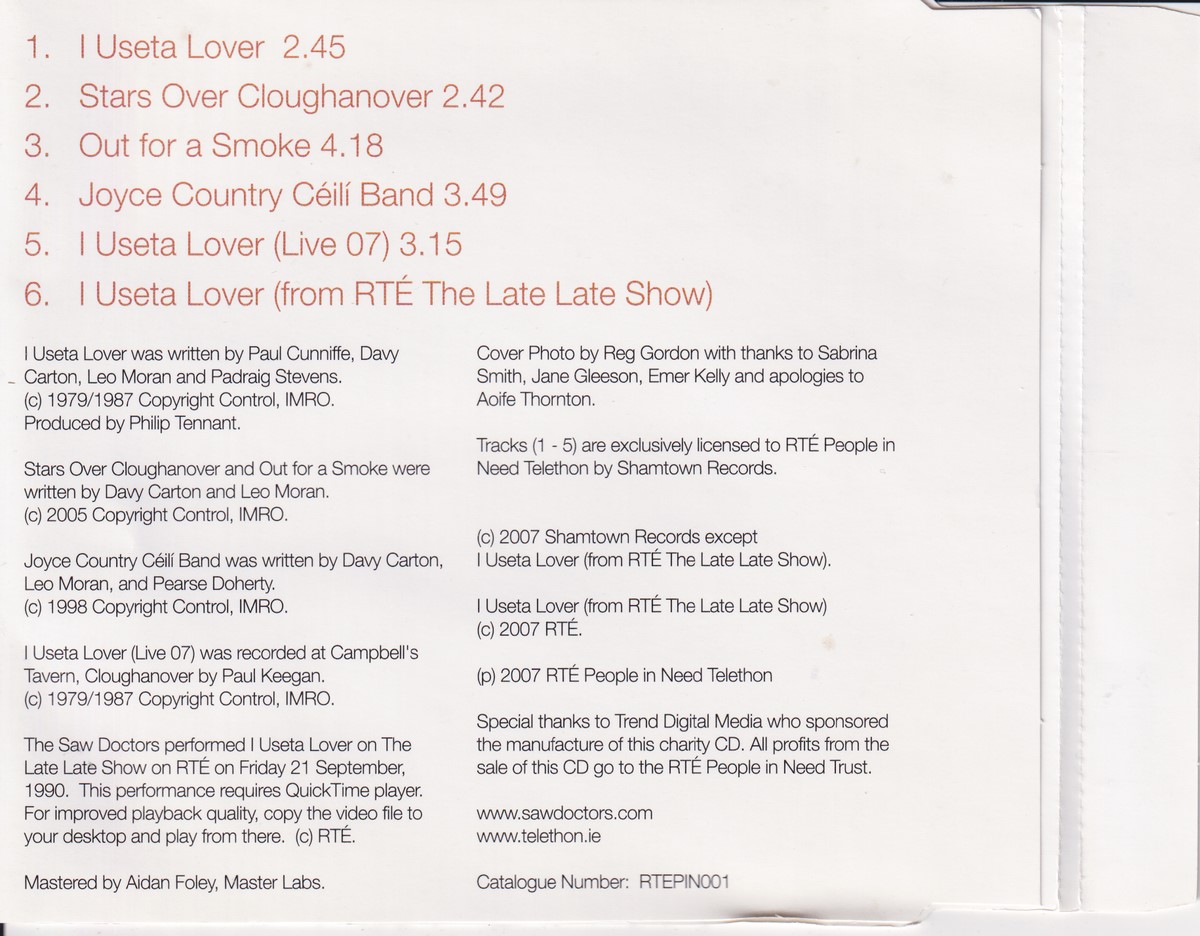 Country of release: Ireland Release Year: 2007 Edition: – Features: Import (non‑UK release) Notes: – Tracklist: 1 I Useta Lover 2:42 2 Stars Over Cloughanover 2:55 3 Out For A Smoke 2:01 4 Joyce Country Céili Band 1:55 5 I Useta Lover (Live 07) 6 I Useta Lover (From RTÉ The Late Late Show) More pictures, click to view full size: