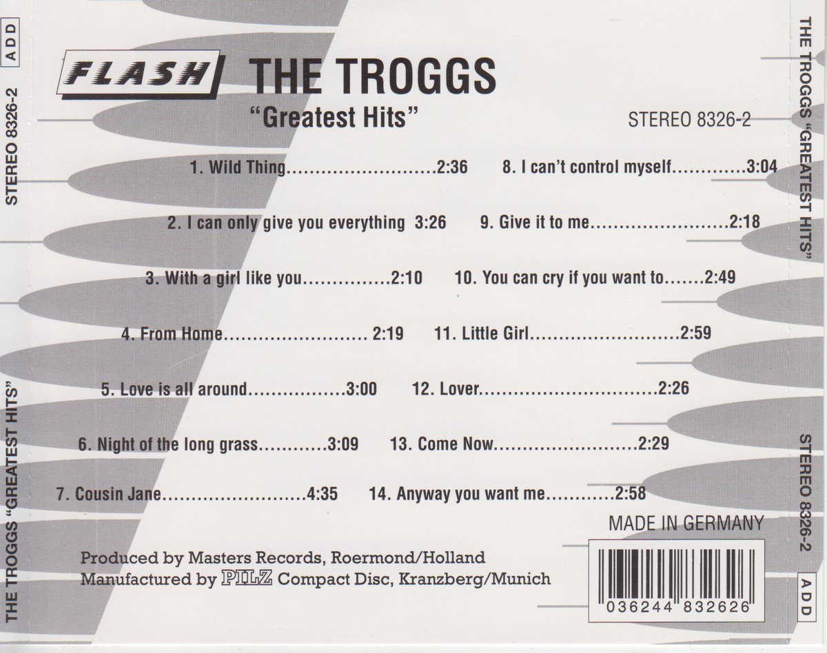 Country of release: Germany Release Year: – Edition: – Features: Import (non‑UK release) Notes: – Tracklist: 1 Wild Thing 2:36 2 I Can Only Give You Everything 3:26 3 With A Girl Like You 2:10 4 From Home 2:19 5 Love Is All Around 3:00 6 Night Of The Long Grass 3:09 7 Cousin Jane 4:35 8 I Can't Control Myself 3:04 9 Give It To Me 2:18 10 You Can Cry If You Want To 2:49 11 Little Girl 2:59 12 Lover 2:26 13 Come Now 2:29 14 Anyway You Want Me 2:58 More pictures, click to view full size: