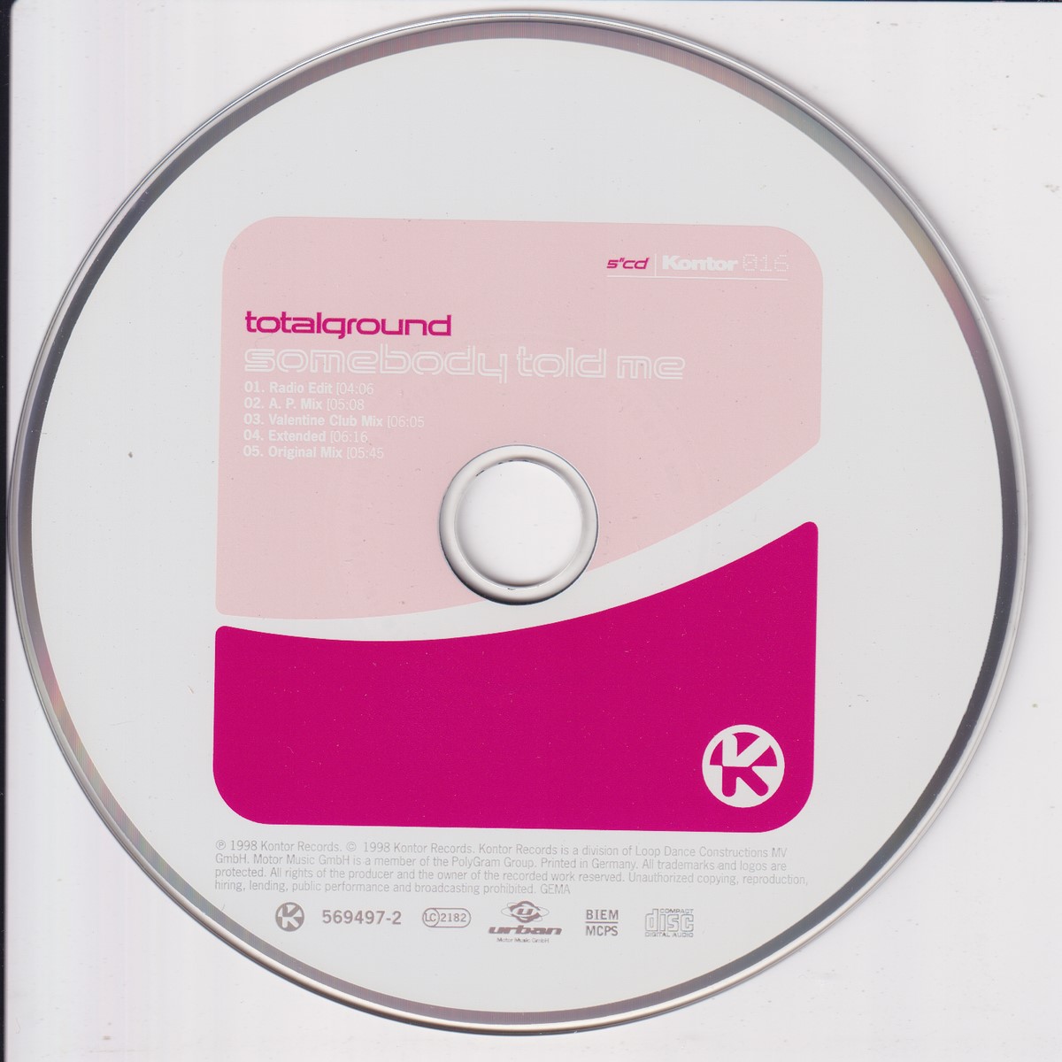 Format: CD Freetext: – Type: Single Number in Set: 1 Case Type: Slimline / J‑card jewel case Label & Cat.no.: Kontor Records – Kontor016 Urban – 569 497-2 |