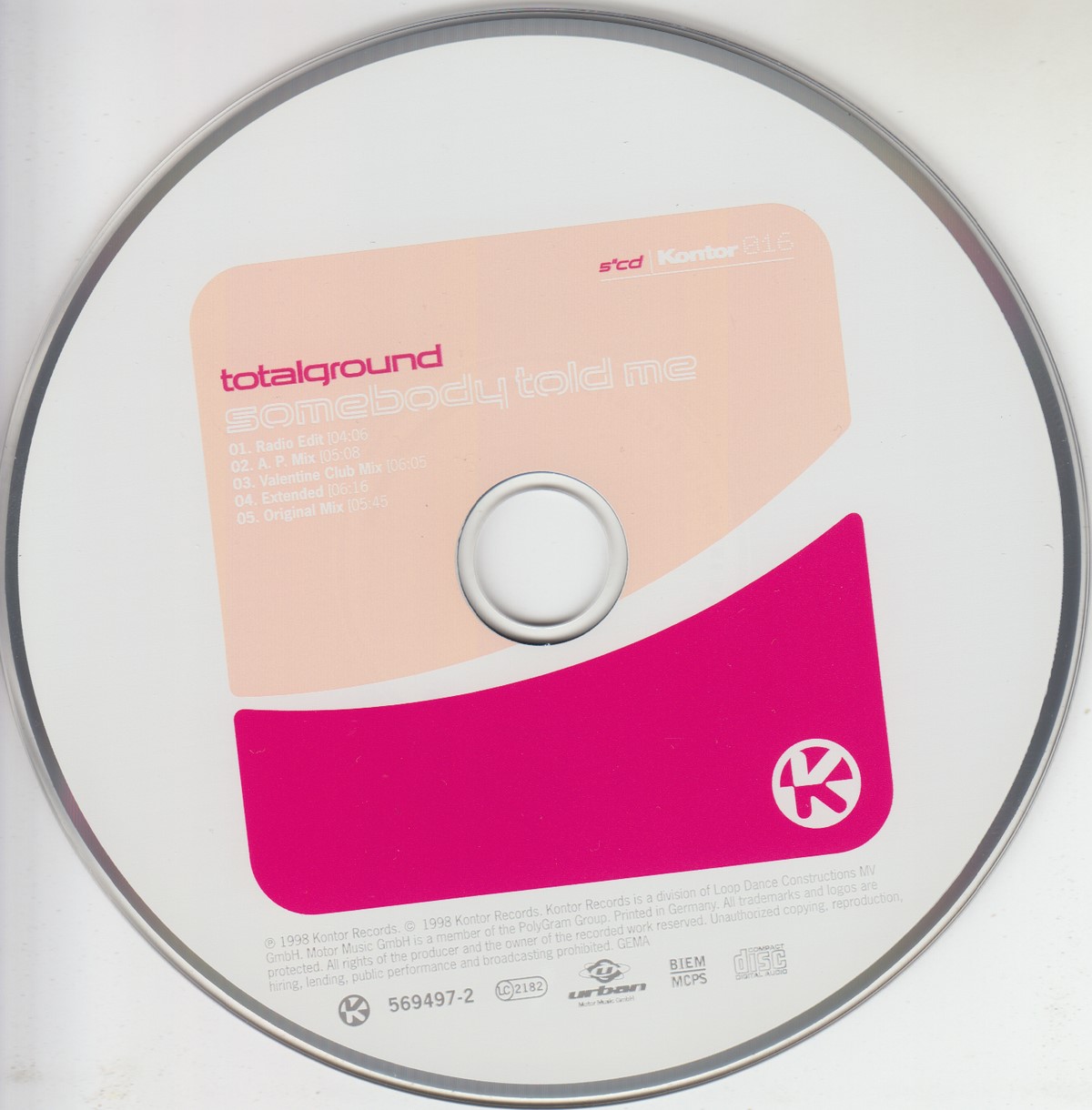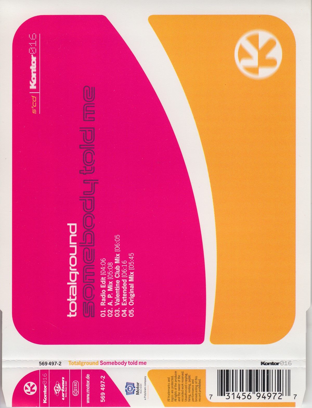 Format: CD Freetext: – Type: Single Number in Set: 1 Case Type: Slimline / J‑card jewel case Label & Cat.no.: Kontor Records – Kontor016 Urban – 569 497-2 |