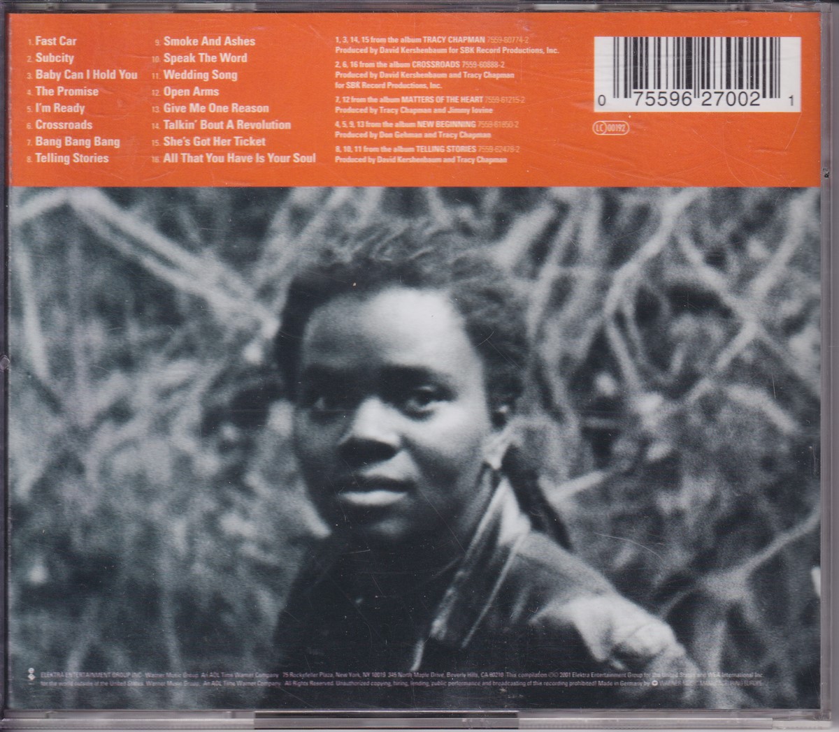 Country of release: Europe Release Year: 2001 Edition: – Features: – Notes: – Tracklist: 1 Fast Car 4:58 2 Subcity 5:09 3 Baby Can I Hold You 3:16 4 The Promise 5:28 5 I'm Ready 4:56 6 Crossroads 4:11 7 Bang Bang Bang 4:21 8 Telling Stories 3:58 9 Smoke And Ashes 6:39 10 Speak The Word 4:14 11 Wedding Song 5:37 12 Open Arms 4:34 13 Give Me One Reason 4:31 14 Talkin' Bout A Revolution 2:28 15 She's Got Her Ticket 3:54 16 All That You Have Is Your Soul 5:16 More pictures, click to view full size: