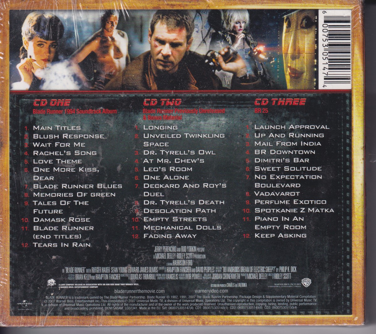 Country of release: Europe Release Year: 2007 Edition: Special Edition Features: Digipak Notes: – Tracklist: Disc 1/3 Blade Runner 1994 Soundtrack Album: Disc 2/3 Blade Runner Previously Unreleased & Bonus Material: Disc 3/3 BR 25: More pictures, click to view full size: