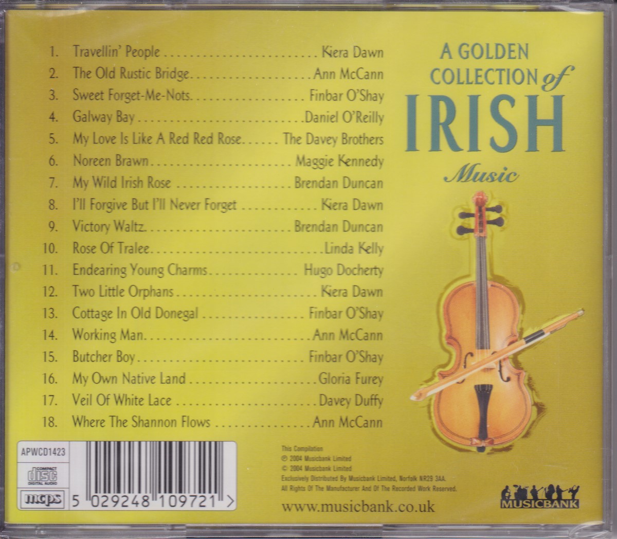 Country of release: UK Release Year: 2004 Edition: – Features: Compilation Notes: – Tracklist: 1 Kiera Dawn – Travellin People 2 Ann McCann – The Old Rustic Bridge 3 Finbar 0'Shay – Sweet Forget Me Nots 4 Daniel O'Reilly – Galway Bay 5 The Davey Brothers – My Love Is Like A Red Red Rose 6 Maggie Kennedy – Noreen Brawn 7 Brendan Duncan – My Wild Irish Rose 8 Kiera Dawn – I'll Forgive But I'll Never Forget 9 Brendan Duncan – Victory Watlz 10 Linda Kelly – Rose Of Tralee 11 Hugo Dogerty – Endearing Young Charms 12 Kiera Dwan – Two Little Orphans 13 Finbar 0'Shay – Cottage In Old Donegal 14 Ann McCann – Working Man 15 Gloria Furey – Butcher Boy 16 Finbar 0'Shay – My Own Native Land 17 Davey Duffy – Veil Of White Lace 18 Ann McCann – Where The Shannon Fleowes More pictures, click to view full size: