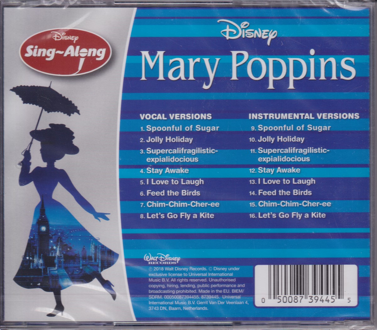Country of release: Europe Release Year: 2018 Edition: – Features: Compilation Notes: – Tracklist: 1 Spoonful Of Sugar 2 Jolly Holiday 3 Supercalifragilisticexpialidocious 4 Stay Awake 5 I Love To Laugh 6 Feed The Birds 7 Chim-Chim-Cher-Ee 8 Let's Go Fly A Kite 9 Spoonful Of Sugar (Instrumental Versions) 10 Jolly Holiday (Instrumental Versions) 11 Supercalifragilisticexpialidocious (Instrumental Versions) 12 Stay Awake (Instrumental Versions) 13 I Love To Laugh (Instrumental Versions) 14 Feed The Birds (Instrumental Versions) 15 Chim-Chim-Cher-Ee (Instrumental Versions) 16 Let's Go Fly A Kite (Instrumental Versions) More pictures, click to view full size: