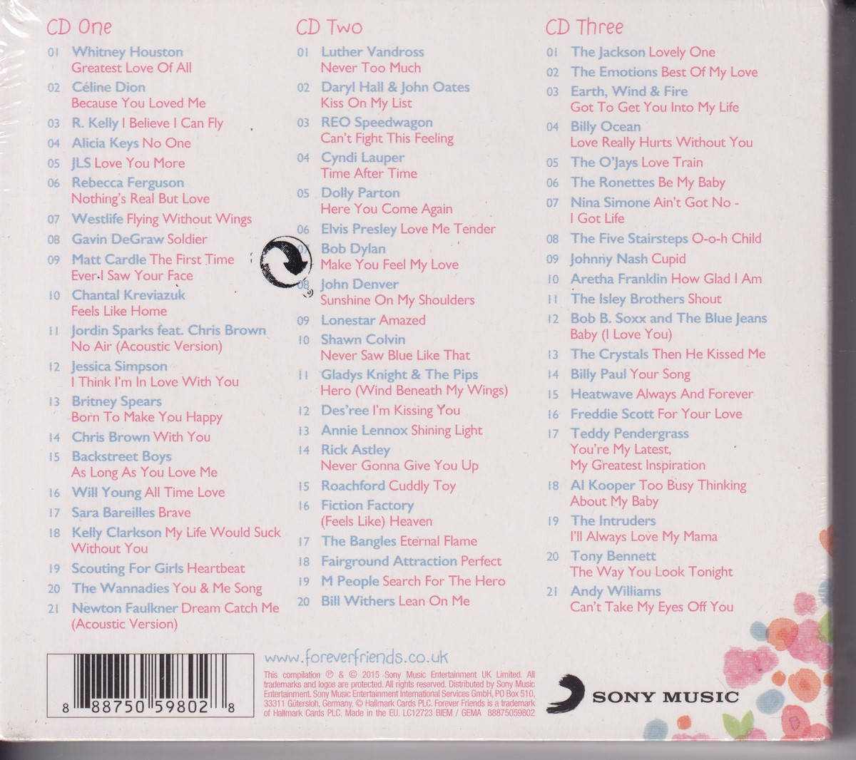 Format: CD Freetext: – Type: Compilation Number in Set: 3 Case Type: Digipak Label & Cat.no.: Sony Music – 88875059802 Series: Forever Friends –
