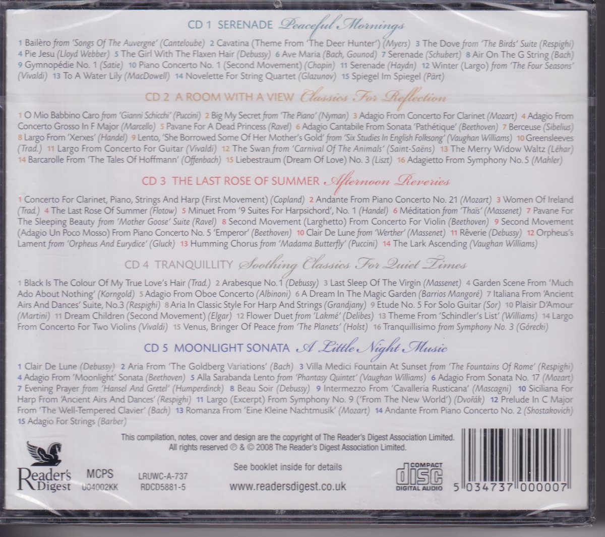 Format: CD Freetext: – Type: Compilation Number in Set: 5 Case Type: Fatbox Label & Cat.no.: Reader's Digest – RDCD5881-5