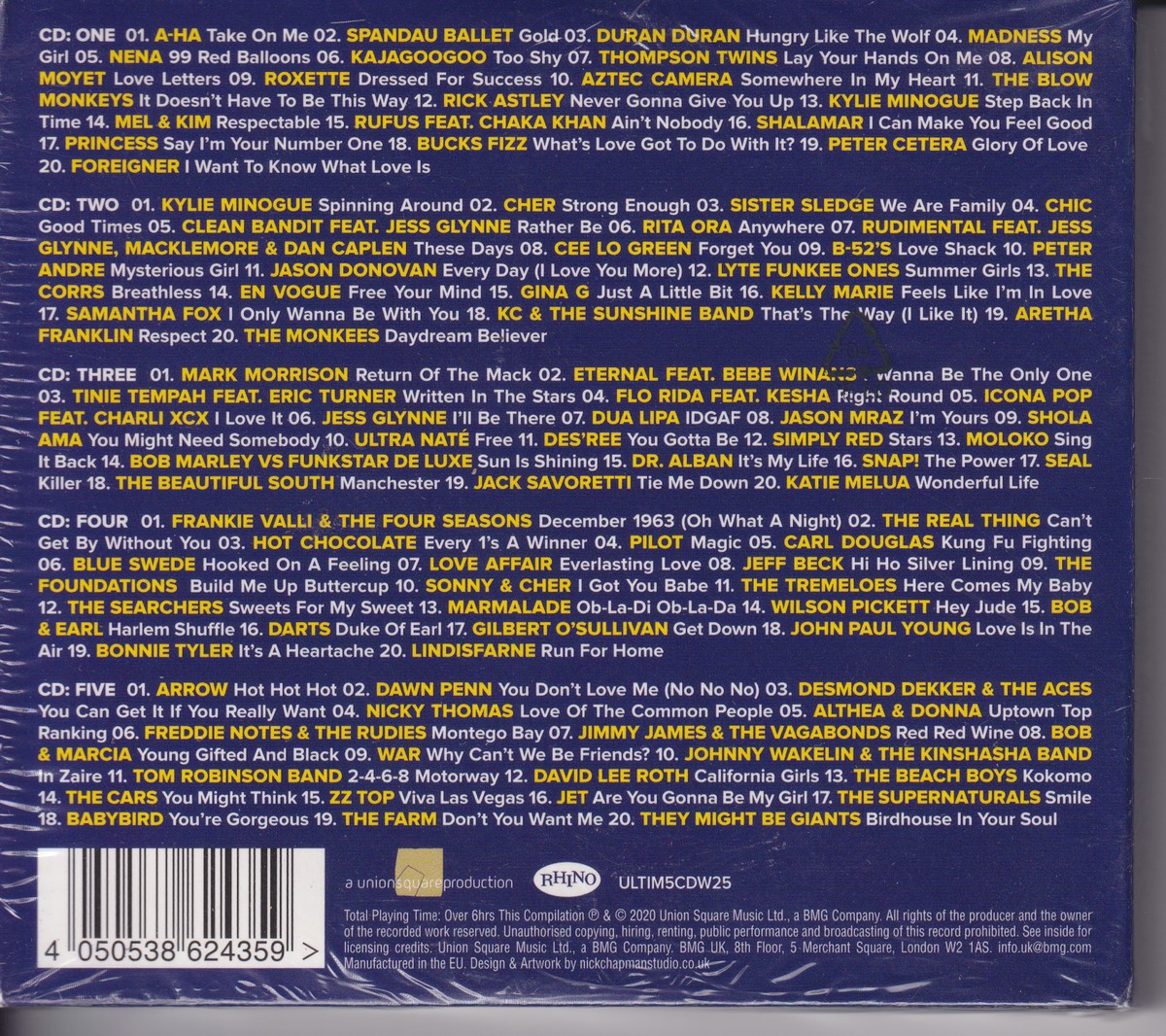 Format: CD Freetext: – Type: Compilation Number in Set: 5 Case Type: Other Label & Cat.no.: Union Square Music – ULTIM5CDW25 Rhino Records (2) – ULTIM5CDW25 Series: The Ultimate Collection (7) – |